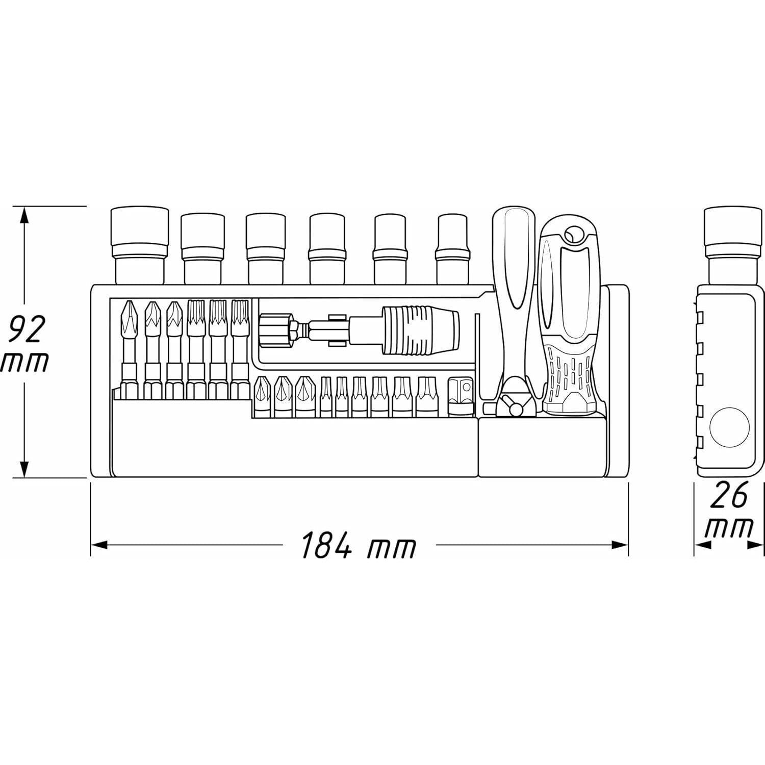 - 18 bits 25 mm long, 11 bits 50 mm long, 6 sockets