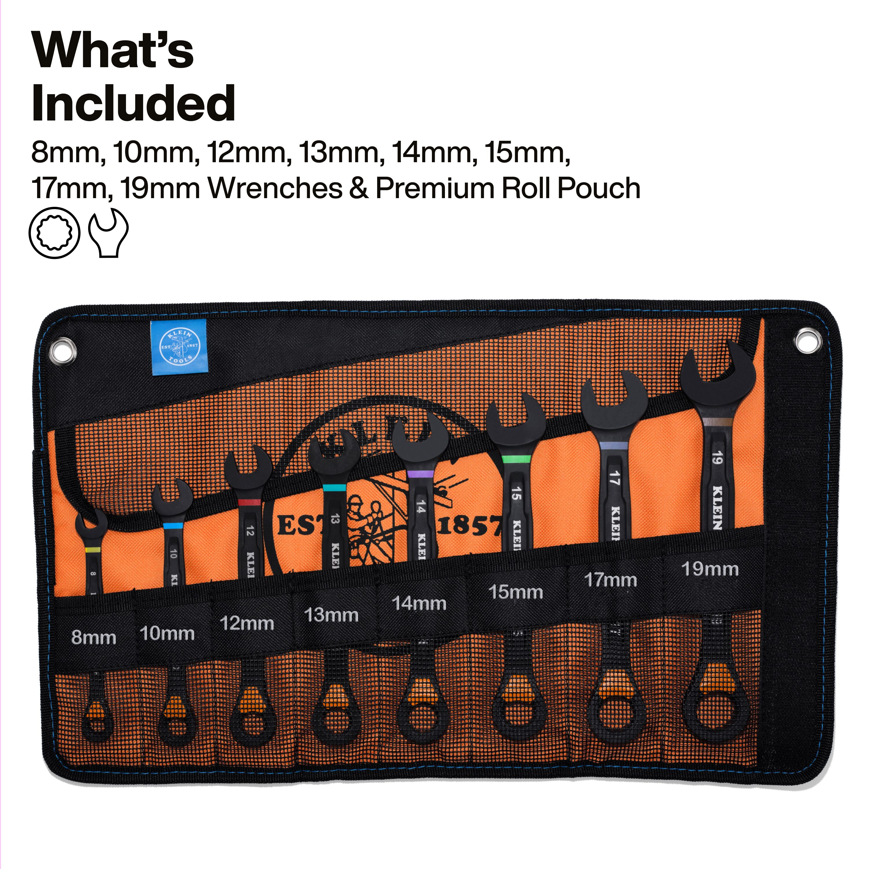 Klein Tools 69508M Ratcheting Combination Slide-Lock Wrench Set, Metric, 8 Pc.