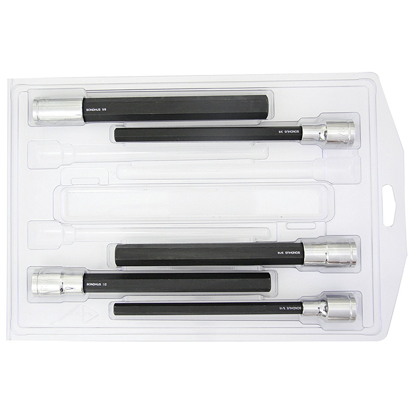 Bondhus 43645 5/16" - 5/8" x 6" ProHold Socket Bits with Sockets, Set of 5