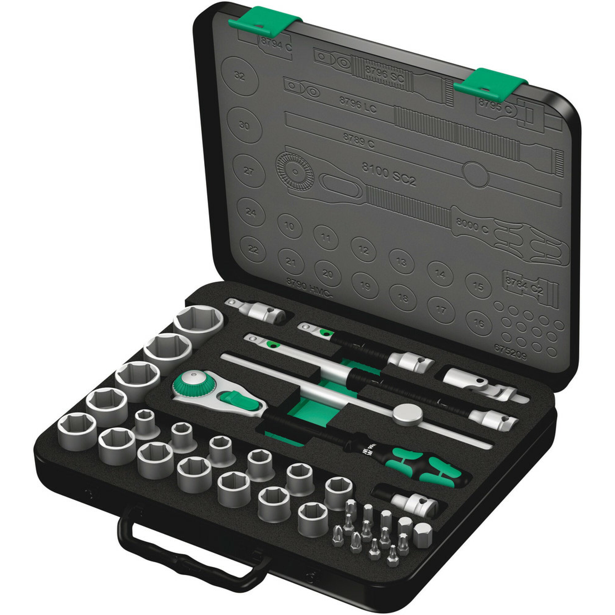 Wera 8100 SC 2 Zyklop Speed Ratchet Set, 1/2" drive, metric, 37 pieces