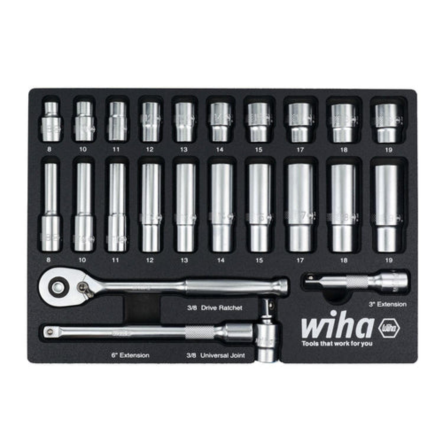 Wiha Tools 33795 24 Piece 3/8” Drive Professional Socket Tray Set - Metric