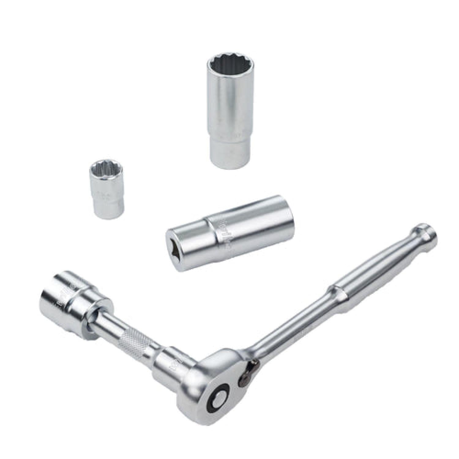 Wiha crafted Professional Series Sockets and Ratchets are engineered with Wiha premium-quality tool steel for strength and durability with a Chrome-plated satin finish for corrosion protection. Wiha's Professional Series Sockets are available as 6 point - 1/4" drive, 12 point - 3/8" drive, and 12 point - 1/2" drive configurations and feature roll-stamped die markings for clear identification, a knurled band for extra grip, smooth broached and clear-coated openings for added protection against rust and corrosion, radiused corners for preventing fastener head round-off, and four-side detent grooves with beveled rim for easy and secure drive engagement. Wiha's Professional Series Ratchets feature a classic 72-tooth ratchet system with 5° arc swing for smooth ratcheting in tight spaces, highly dependable pawl mechanism for slip and skip prevention, a spring-loaded detent retaining ball for secure socket lock, and a push button quick release for rapid socket exchange. Wiha's Professional Series Extensions are available in 3.0", 6.0", and 10.0" OAL and feature roll-stamped die markings for clear identification, a knurled band for extra grip, a beveled drive end for smooth socket engagement, broached and clear coated openings for protection against rust and corrosion, radiused interior drive corners for reduced stress concentrations, and a spring-loaded detent retaining ball for secure socket lock.