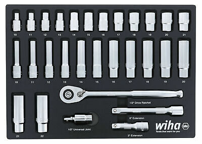 Wiha Tools 33895 29 Piece 1/2" Drive Professional Standard and Deep Socket Tray Set - Metric