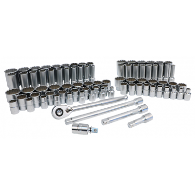 - Set Includes: 1/2” Standard Sockets: 5/16-1-1/4”, 1/2” Standard Sockets: 8-34mm (does not include 33mm), 1/2” Deep Sockets: 3/8-1-1/4”, 1/2” Deep Sockets: 10-32mm (does not include 27mm and 31mm), 1/2” Drive Reversible Ratchet: 72 Tooth, 1/2” Drive Extension Bars: 3” | 6” | 10”, and 1/2” Universal Joint
