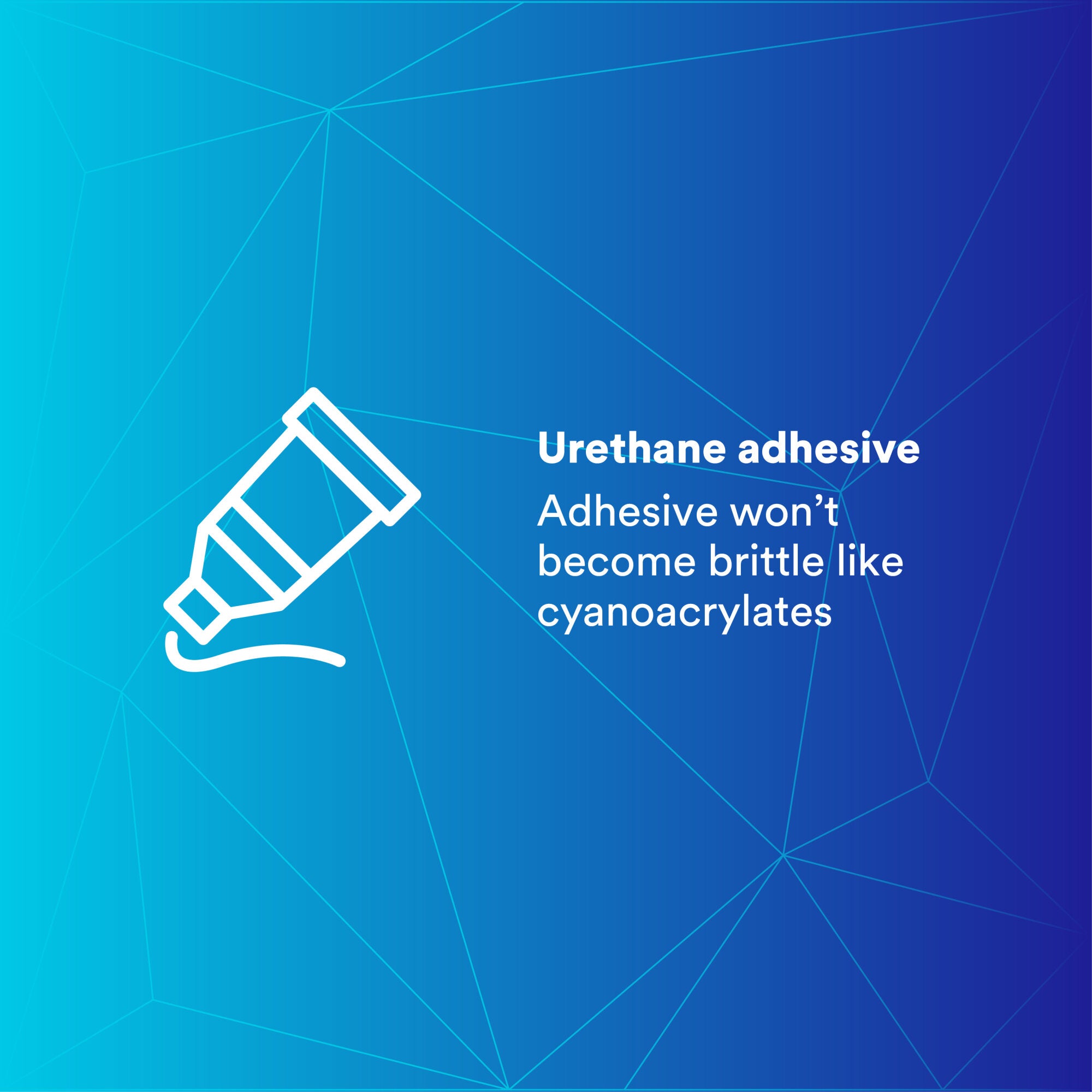 - URETHANE ADHESIVE: Adhesive won't become brittle like cyanoacrylates