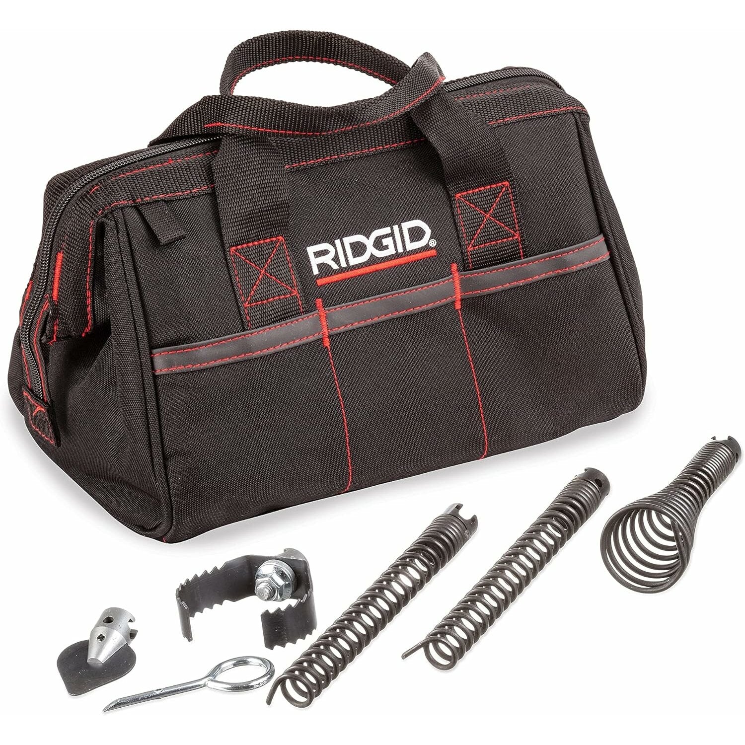 Master your jobs with ease and accuracy with the RIDGID Model A-61 Standard Tool Kit (catalog number 61625, model A-61). Designed for plumbing experts, this tool kit is made for use with the RIDGID K-60-SE and K-60SP sectional machines and features all the basic essentials to help you easily find, identify, and clear tough drain line blockages. It includes a T-101 straight auger, T-102 funnel auger, T-107 spade auger, T-125 reviving auger, T-150 shark tooth cutter, and 12 pin key along with a rugged toolbox to keep the tools protected and organized. The K-60-SE and K-60SP sectional machines have compact yet powerful designs ideal for septic tank vacuum truck operators, rooftops, and a variety of other institutional, commercial, or residential cleaning. Their small footprint offers convenient storage and transportation, while the rear handles allow for easy carrying the machine up ladders, making them perfect for rooftop vent stacks. Their cable clutches maximize operator control to instantly stop rotating the cable while allowing for easy cable change-outs to increase capacity and versatility.