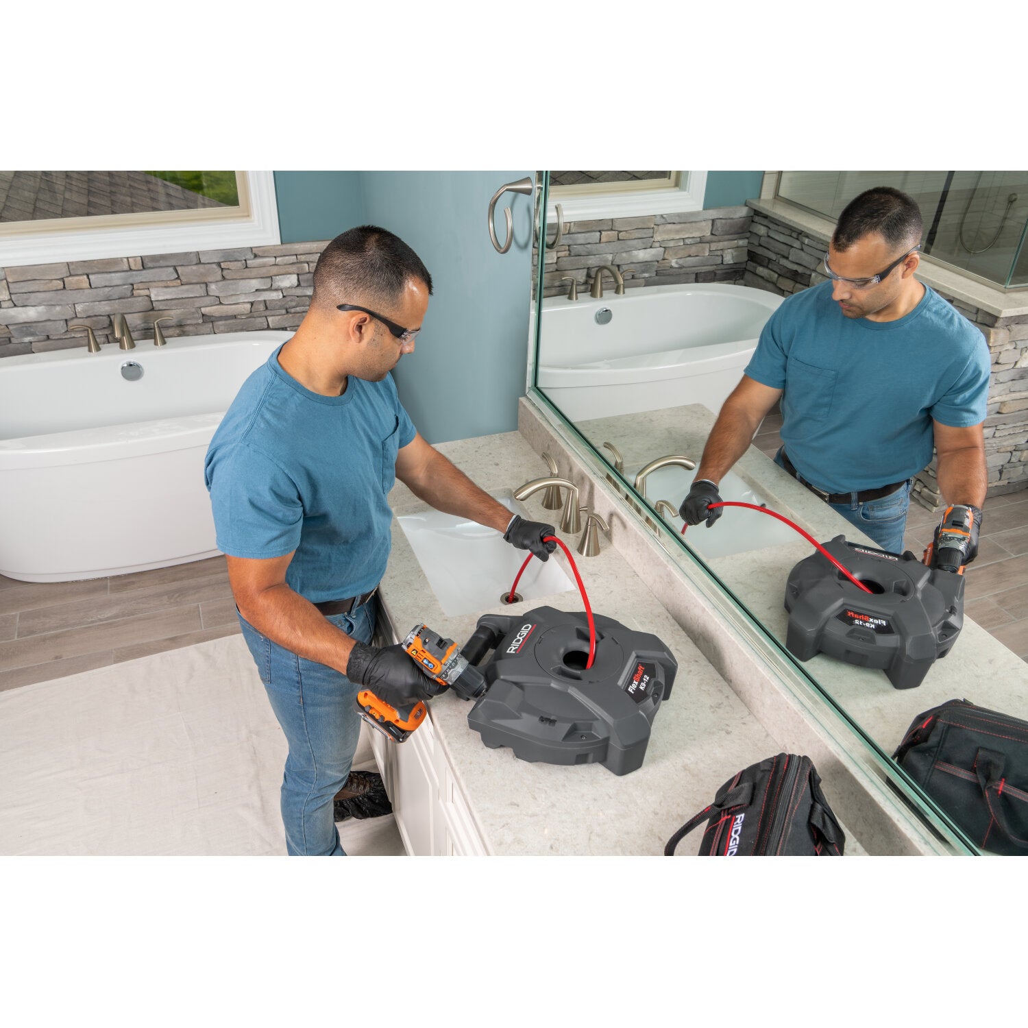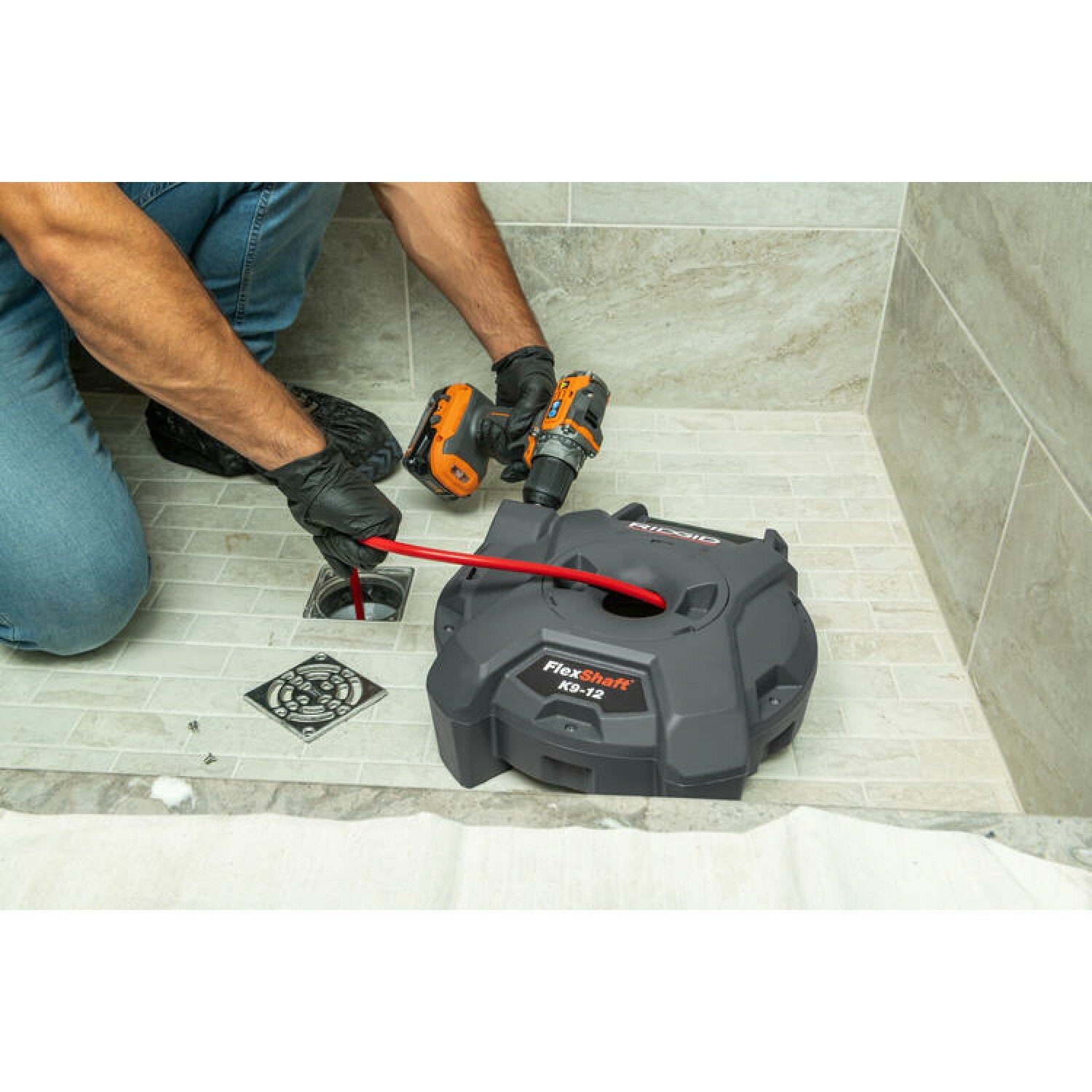 The RIDGID K9-12 is the most compact version of the FlexShaft Drain Cleaning Machines. The fully enclosed housing contains 30' (9.1 m) of FlexShaft cable, encapsulated in nylon sheath for less mess and easy cleanup. The lightweight, portable design is perfect for 1 1/4" - 2" (32 to 50 mm) pipes.FlexShaft cable is spun by attaching your cordless drill to the input shaft on the housing. As the cable spins, the chain knocker attached will expand to provide wall-to-wall pipe cleaning.Fast setup and cleanup, quick cleaning, and cordless convenience allow you to restore your pipes to full flow capacity as efficiently as possible. The RIDGID K9-12 is an ideal entry-level machine for clearing Light Residential Blockages.
