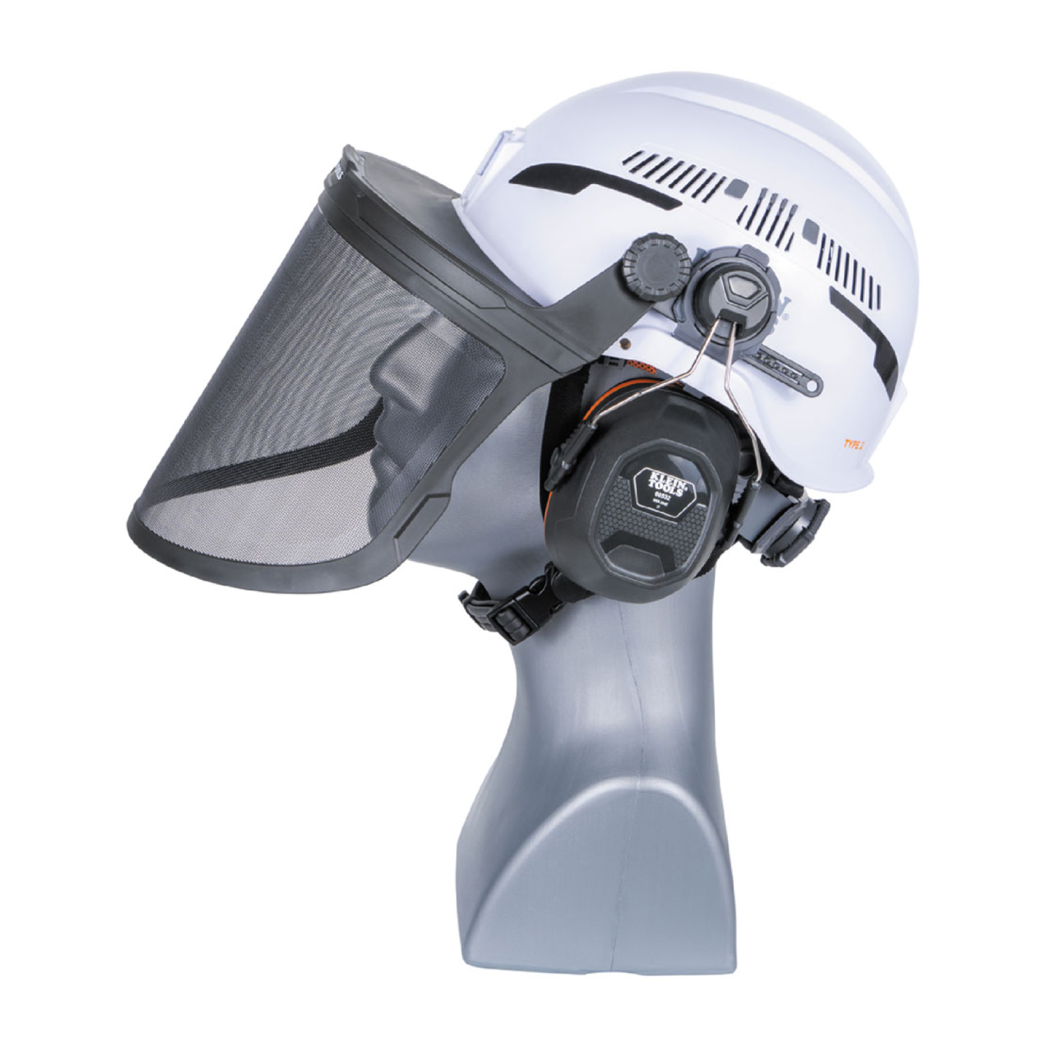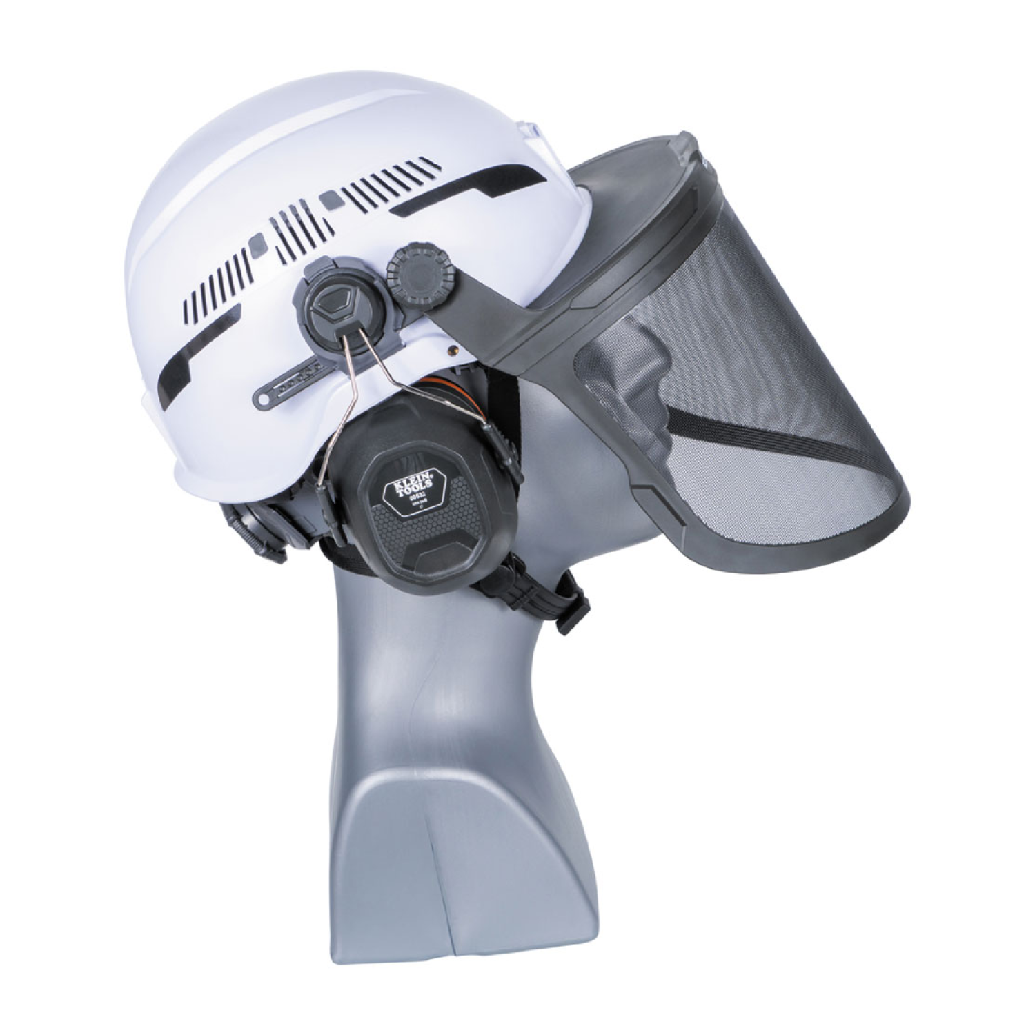 • Forestry Kit includes Klein Tools Type-2 Vented Safety Helmet, Mesh Face Shield and Klein Safety Helmet Earmuffs