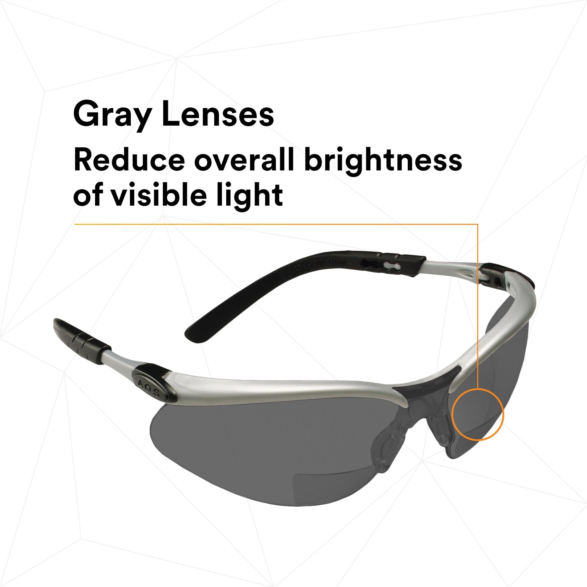 3M BX Reader Protective Eyewear 11378-00000-20, Grey Lens, Silver Frame