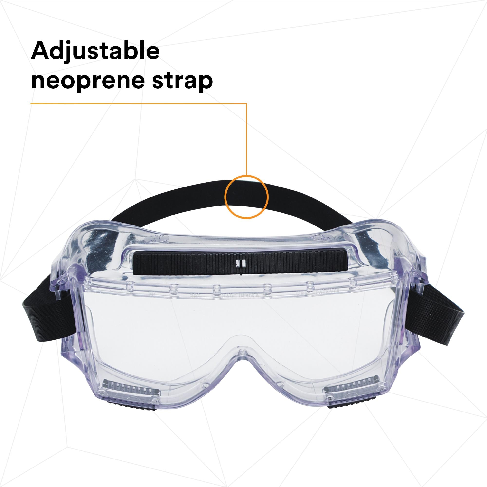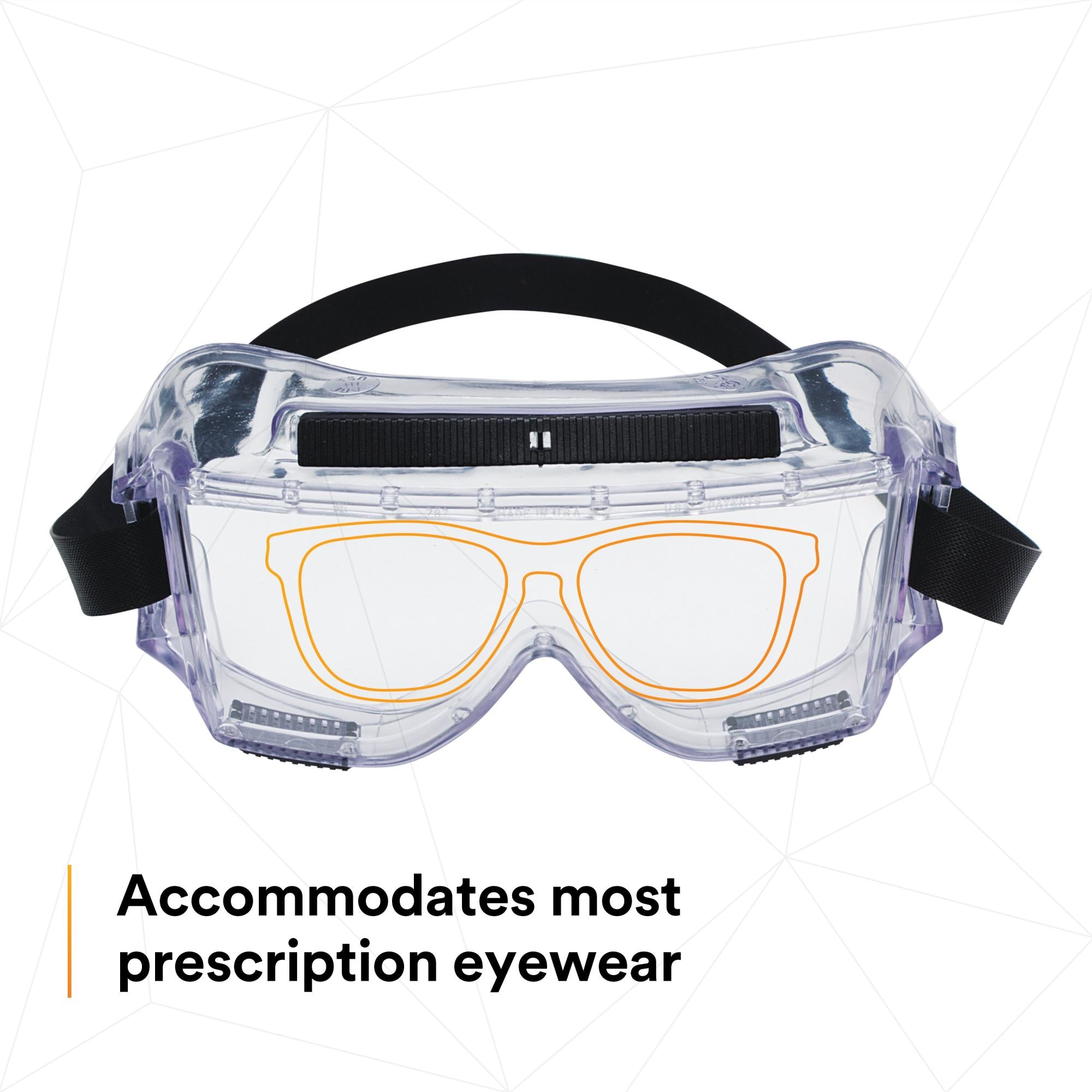 3M Centurion 454 Series Safety Impact Goggles are a reliable choice in protective eyewear. With a stable, sturdy construction and wide nasal flare, these goggles balance comfort and reliable protection. Additionally, their indirect venting system is designed to minimize fogging.3M™ Centurion™ 454 Series Safety Impact Goggles have a wide-angle wraparound lens and frame for good peripheral vision. This design is built to accommodate most prescription eyewear while meeting the Impact-Rated Protector requirement of the ANSI-ISEA Z87.1-2020 Standard.