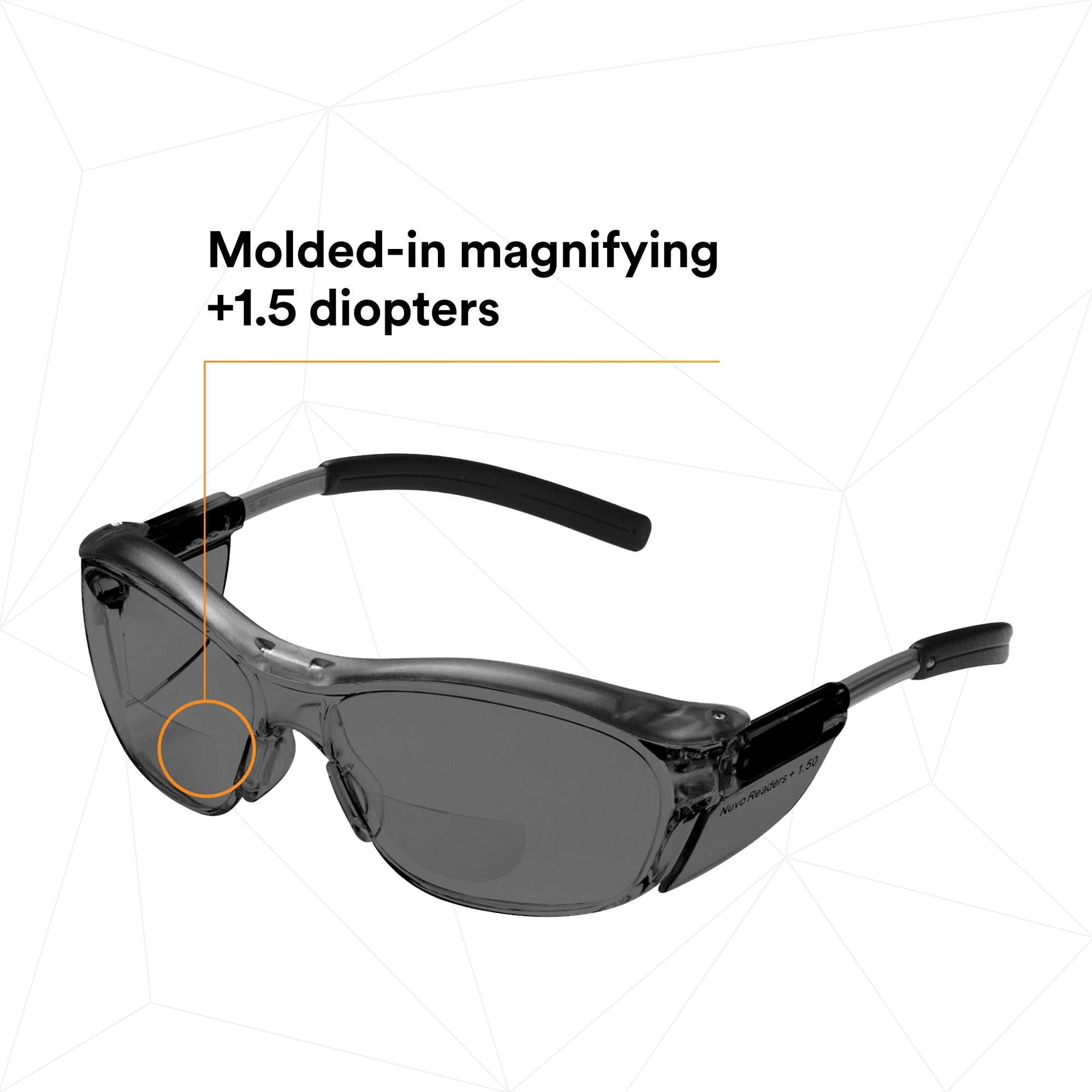 3M Nuvo Reader Protective Eyewear 11500-00000-20 Gray Lens, Gray Frame