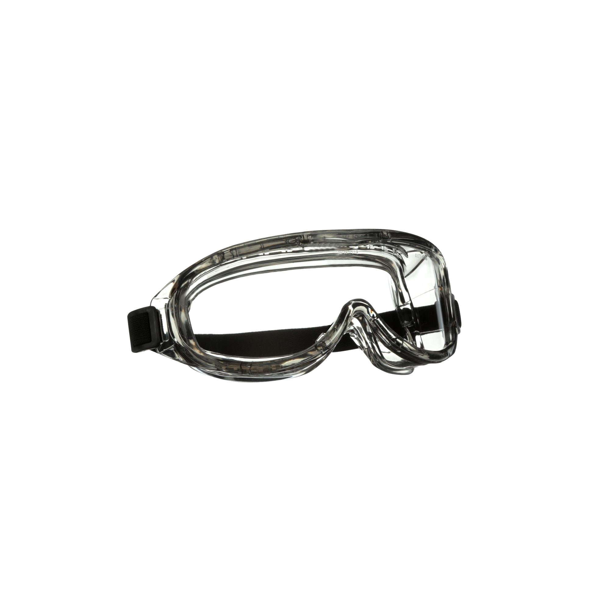 Let's face it–some jobs are messy, but with the help of the 3M™ Chemical Splash/Impact Goggles you can protect your eyes. Equipped with a tough, polycarbonate lens and soft, pliable shroud, these safety goggles help protect against certain particles and liquids while providing a comfortable fit that conforms to your face. The large size also accommodates some personal eyewear. Strategic vents help ensure protection from liquids while allowing airflow. The stretchy, adjustable strap provides a secure, personalized fit every time. So whether you're spray painting an accent wall or ripping a plank, rely on the powerful protection of 3M™ Chemical Splash/Impact Goggles.
