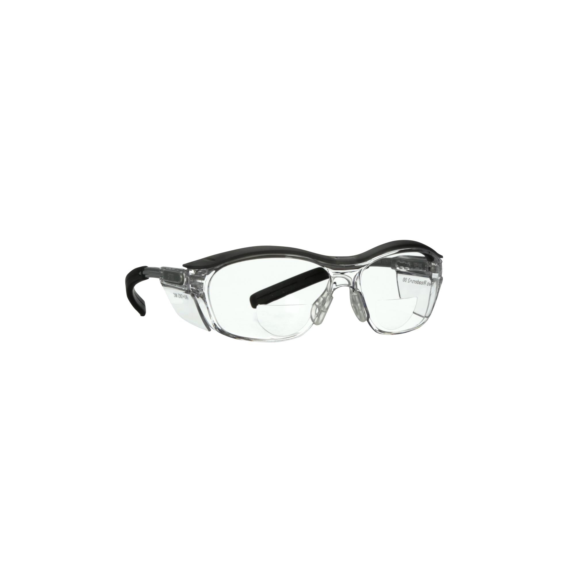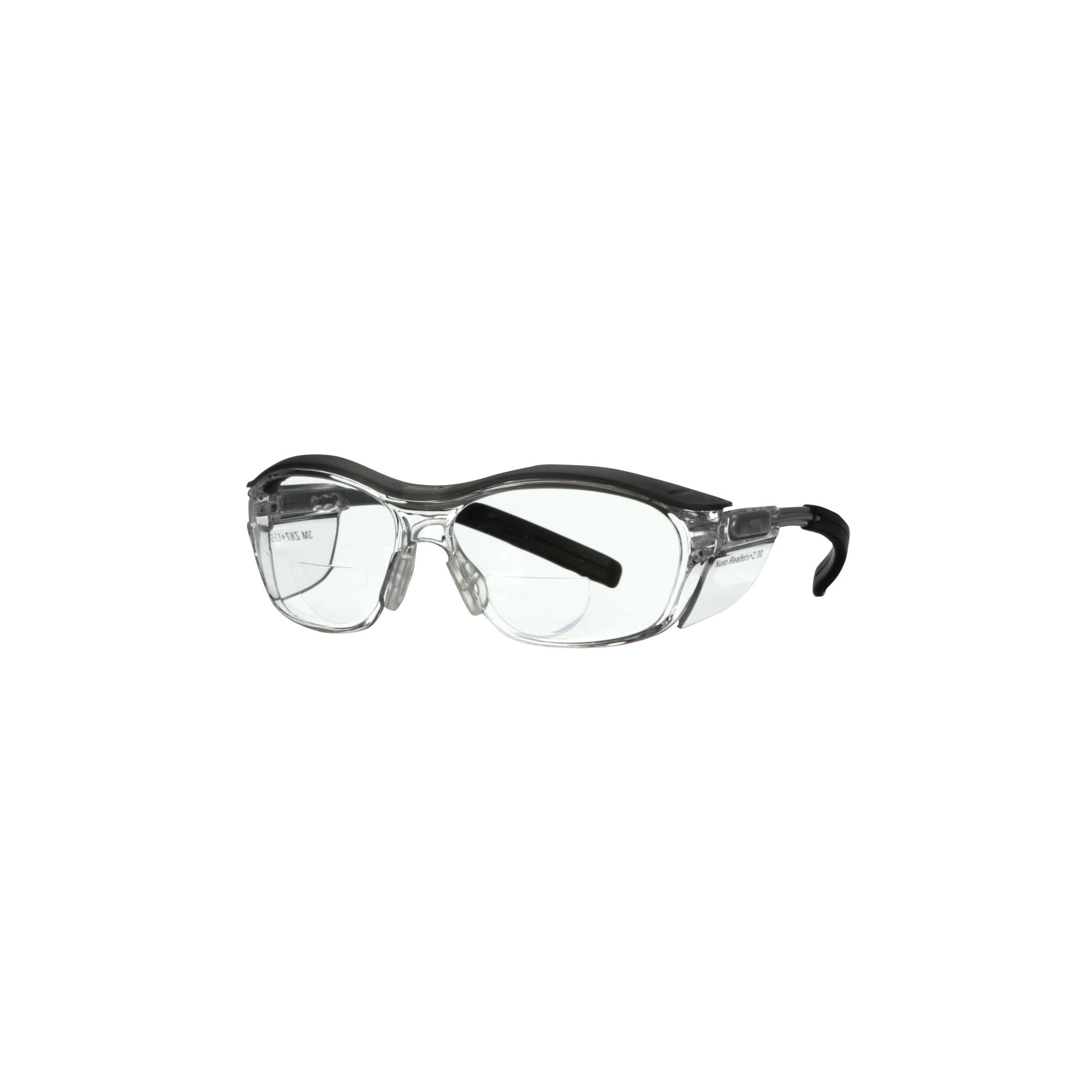 Protect your eyes and stay focused on the task at hand with the help of 3M Safety Eyewear. An excellent choice for you and all of your crew, these safety glasses help block small flying objects or particles, while providing essential protection from harmful UV rays. Classic dual lens design provides 99.9% UV protection with a built in bifocal power of +2.0. Black frame with clear lens. Adjustable temple lengths and lightweight construction. Meets ANSI Z87.1 and CSA Z94.3 standards.