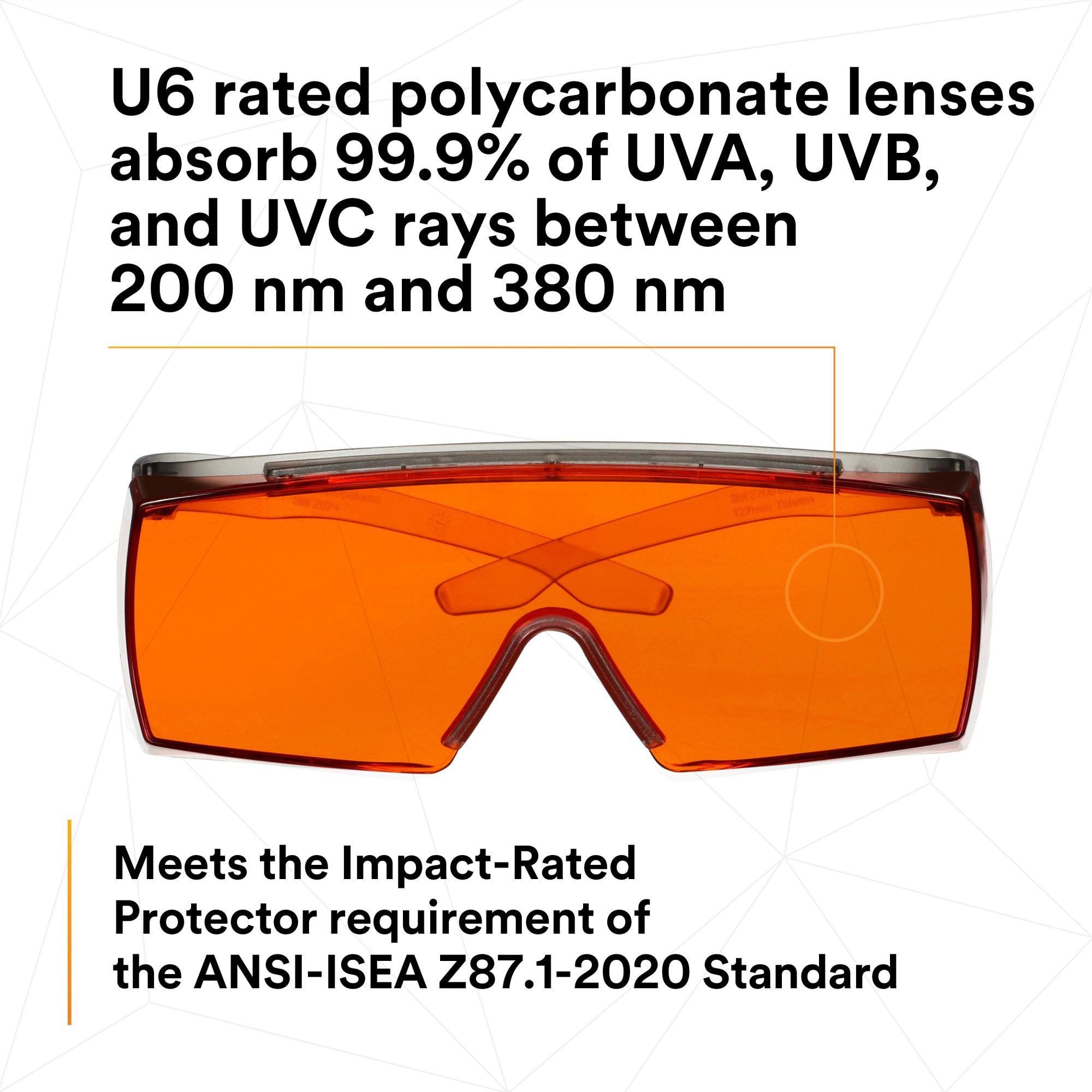 - U6 rated polycarbonate lenses absorb 99.9% of UVA, UVB, and UVC rays between 200 nm and 380 nm