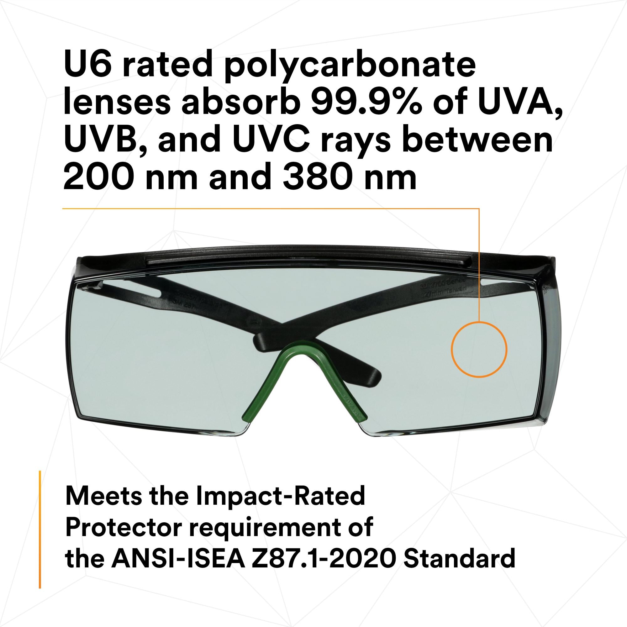 - U6 rated polycarbonate lenses absorb 99.9% of UVA, UVB, and UVC rays between 200 nm and 380 nm