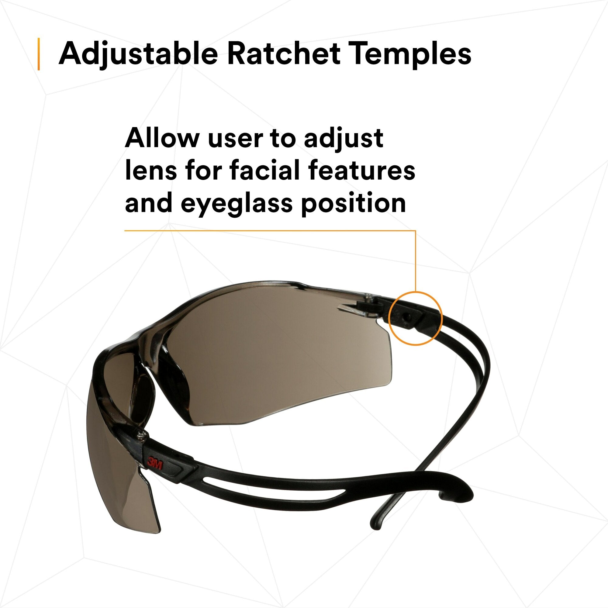 - 3M's innovative temple design features slotted ribs that provide comfortable pressure equalization, allowing the temples to flex and self-adjust to the size of the wearer's head.