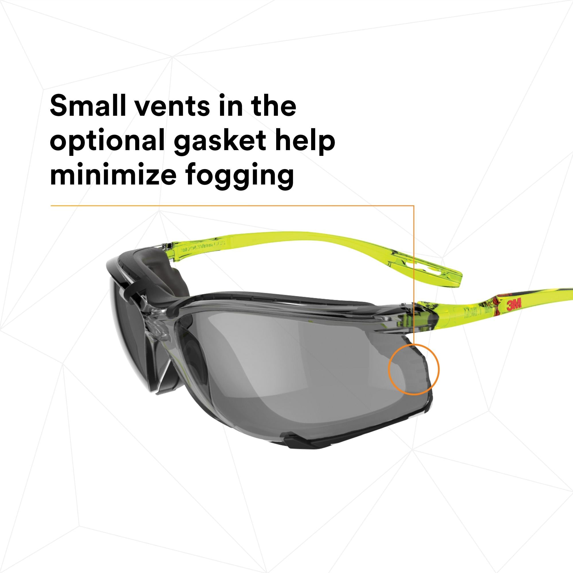 - Small vents in the optional foam gasket help minimize fogging.