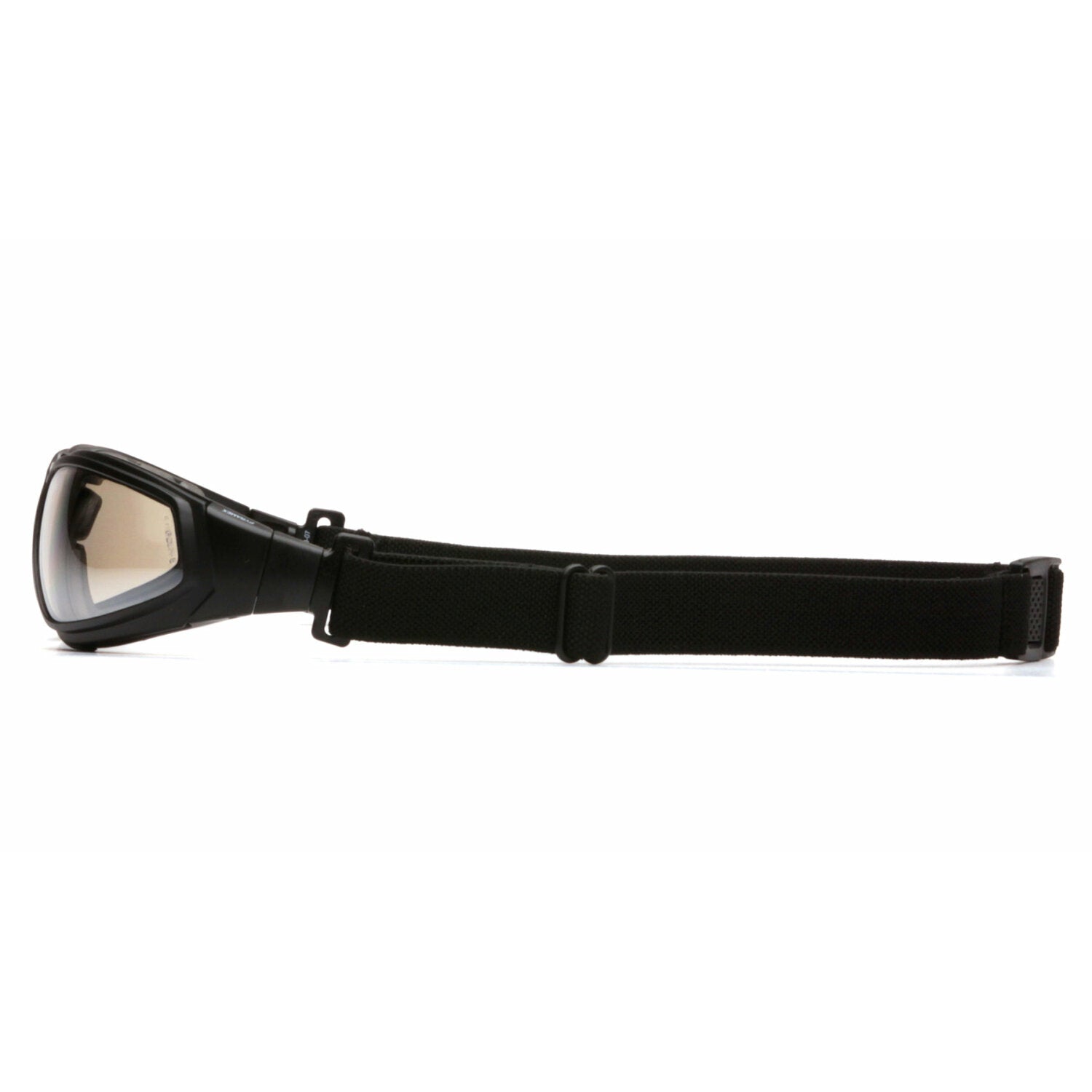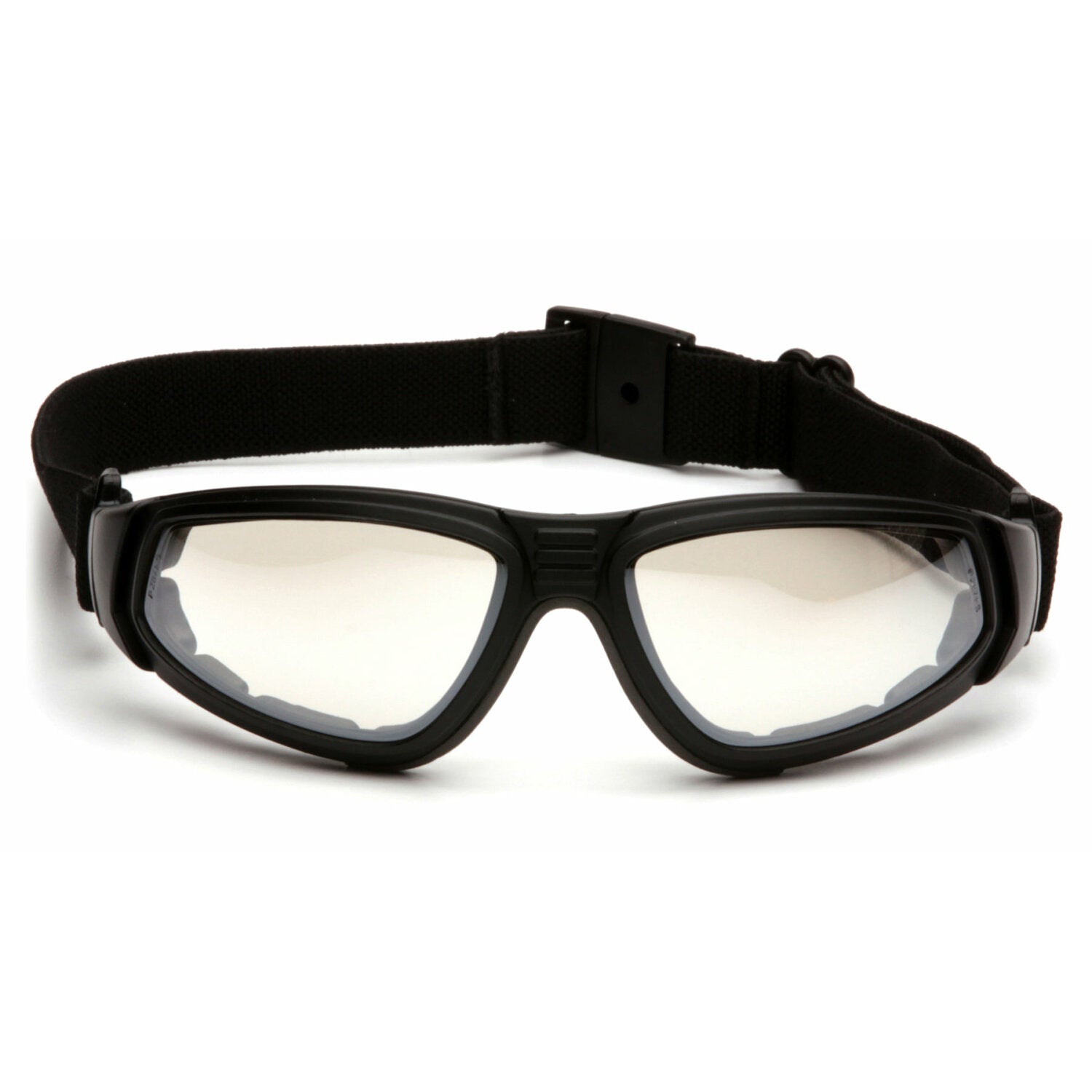 Pyramex - XSG - Black Frame/Indoor/Outdoor Anti-Fog Lens - Flame resistant foam padding forms a seal to keep out dust and airborne particles. Strap has Quick Fit retainer for easy on/off. Lenses are treated to prevent fogging. Design allows air to flow freely reducing heat. XS EASE Replacement lens system. Interchangeable temples/strap included with each pair. Lenses provide 99% protection against harmful UV rays.