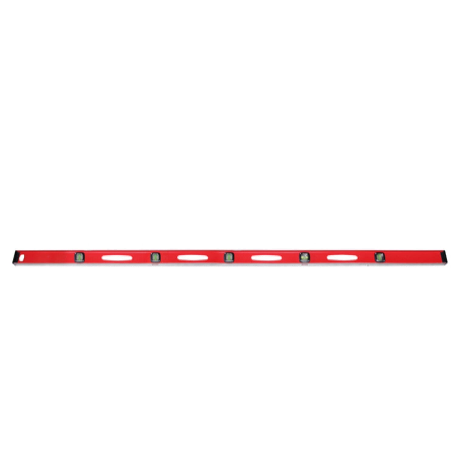 This handy 48" durable, lightweight extruded aluminum level is a great choice for many different jobs. The heavy-duty level features a sturdy I-beam frame includes a strong magnetic strip. Five solid set vials include one level and four plumb levels for leveling from different angles. The center level vial has a top-reading window to quickly read from many different positions. Each vial is Cat's Eye Yellow for ease in reading. Special solid set acrylic Roto Vial® are used for durability and accuracy. Each vial features permanent lines that won't fade or wear away. The level is guaranteed accurate to .0004 In. per inch. Shock absorbing rubber end caps are secured to the end of the level to stand up to wear and tear on the tool. The bright red color of the level is easy to spot on the job site. Large hand holes provide comfort and ease when moving the level. A hang hole on one end makes storing easy. Store in a Professional Level Case (SLPLC72), sold separately, to protect your level and extend its life.