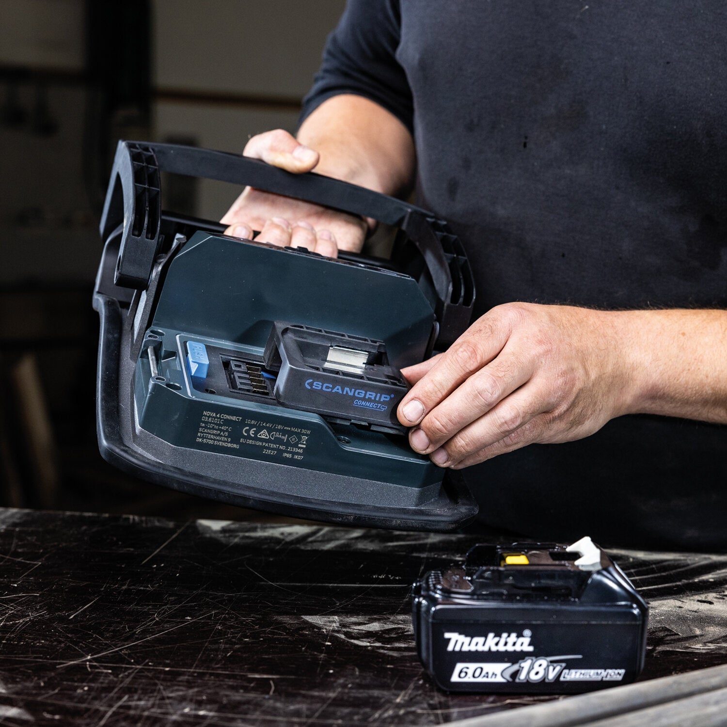 We have created a groundbreaking range of hybrid and innovative work lights compatible with all power tool brands. With the new SCANGRIP CONNECT work light range we connect the world of power tool batteries and professional work lights providing complete freedom to use a SCANGRIP work light regardless of your battery brand preference. The new SCANGRIP CONNECT work light series is compatible across all leading power tool brands, that is BERNER, BOSCH, BOSCH GREEN, DEWALT, EINHELL, FEIN, FESTOOL, FLEX, HAZET, HIKOKI, INGERSOLL, MAKITA, METABO, MILWAUKEE, RIDGID, SNAP-ON, and WÜRTH - and more to come.