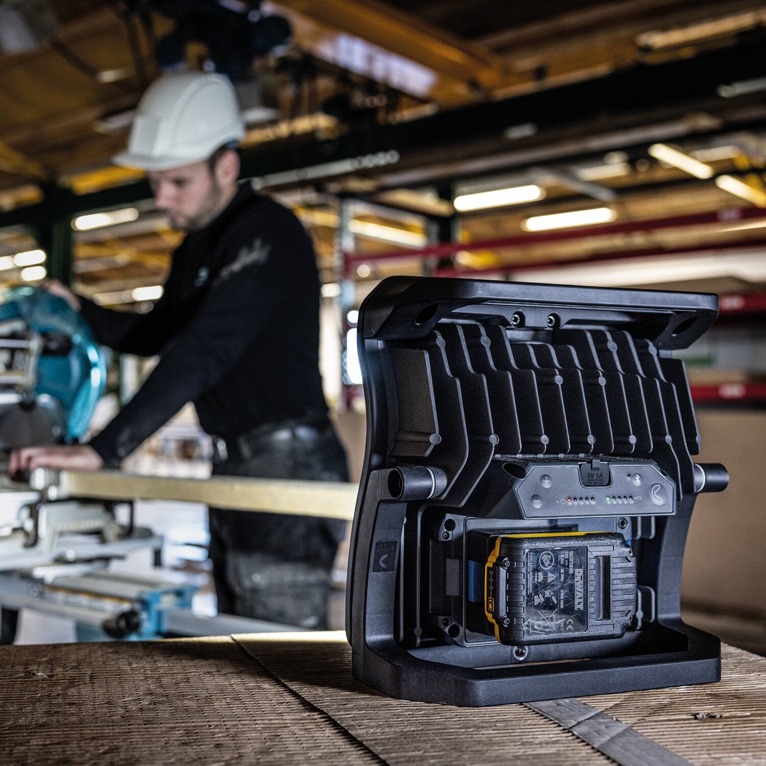 The powerful and sturdy NOVA 10 CONNECT features the latest COB LED technology and provides up to 10000 lumen making it a universal all-round work light for the demanding professional user. As a unique feature, NOVA 10 CONNECT is compatible with METABO / CAS battery system 18 V and all other 18 V/20 V batteries from leading power tool brands by using the SCANGRIP CONNECTOR. In addition, the SCANGRIP POWER SUPPLY can be used for direct power providing unlimited availability to light. NOVA 10 CONNECT also has an internal back-up battery securing 1 extra hour at 1000 lumen. With the user-friendly BLUETOOTH light control app, you get an extraordinary possibility to turn on/off and control up to four work lights through a mobile device. The built-in dimmer function enables you to adjust the light output into five different levels. This feature saves time from manual operation and increases work efficiency on a daily basis. It is designed with a display for battery capacity and lumen output level, and supplied with a built-in power bank. NOVA 10 CONNECT is extremely sturdy and waterproof (IP65). The design is elegant, with a carrying handle and a stand for flexible positioning and direct mounting on the SCANGRIP TRIPOD.