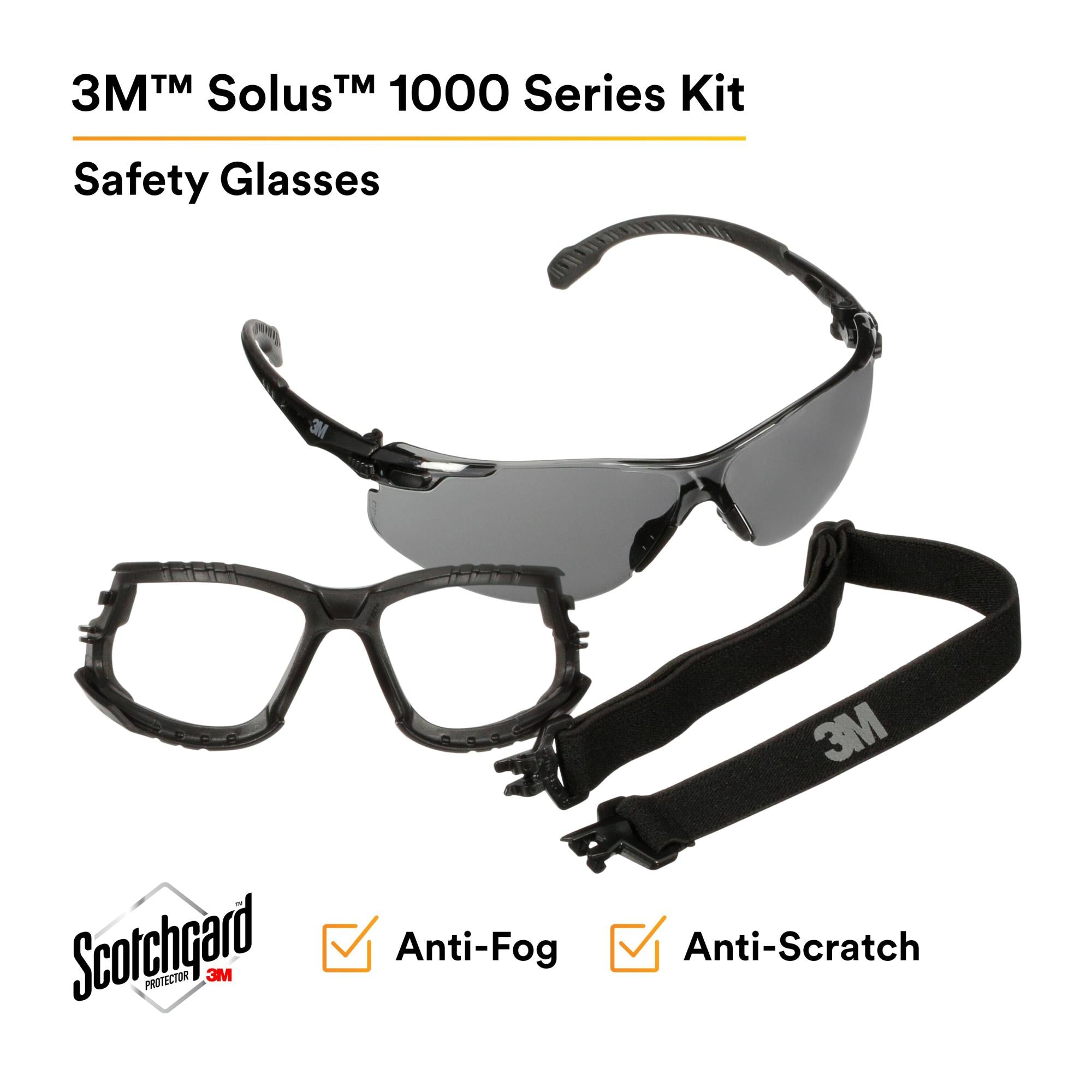 3M Solus 1000 Series, S1502SGAF-KT, Blk Temples, Scotchgard Anti-Fog Coating