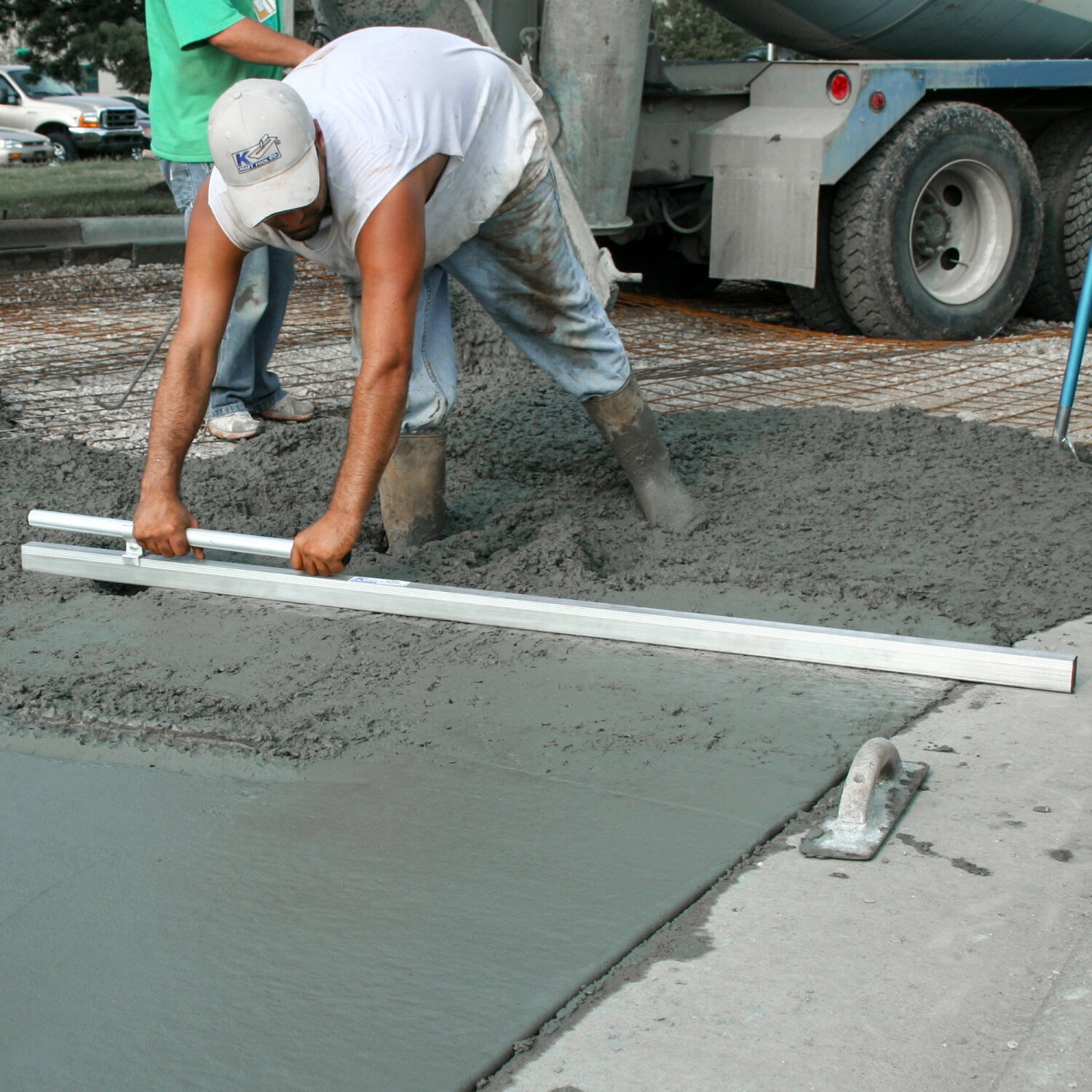 This innovative tool can be used as a float, screed, or check rod when you want the perfect finish. A 6' blade of Genuine Extru-Lite Magnesium forms the base of the tool. The 1-3/8" wide bottom edge features a round edge for floating and a square edge for cutting. Magnesium is 30% lighter than aluminum straightedges. End caps fit within either end of the blade to eliminate potential for build up of material. The 24" long extruded aluminum handle adjusts to accommodate the user's preference for pushing, pulling, or one-handed sweeping motions. Ideal for concrete or landscape construction. The handle also features end caps to avoid build up.