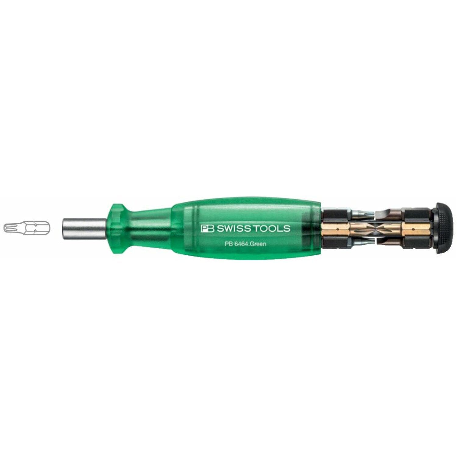PB Swiss PB 6464.Green Bit Holding Screwdriver with Magazine, Slotted, Phillips, Torx, 9 Pcs, Stainless Steel Magnetic Bit Holder,Easy, Fast bit change.