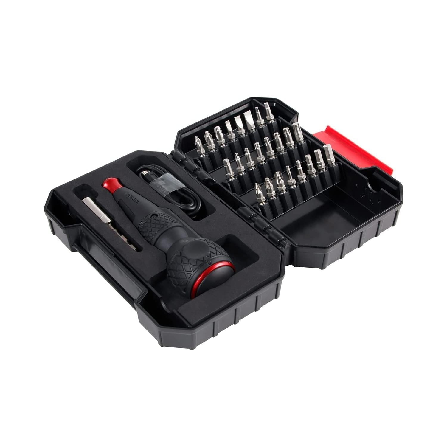 Vessel Tools 220USB25U Ball Grip Rechargeable Screwdriver with 25 piece Bit Set