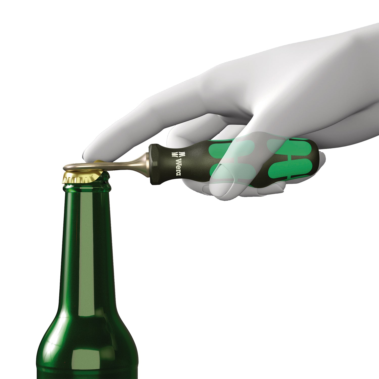 6-piece screwdriver set with Kraftform Plus handle for comfortable ergonomic screwdriving, which avoids blisters and calluses. Hard handle zones for high working speeds, while soft handle zones guarantee a high torque transfer. Includes some tools with Lasertip blades: The tip clings to the screw head and prevents it slipping out. Take it easy tool finder with colour coding and size stamping - for easy and fast location of the required tool. The anti-roll protection avoids bits from annoying rolling away in the workplace. Plus iconic Wera bottle opener.