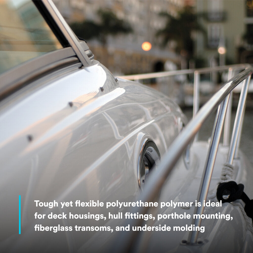 • VERSATILE APPLICATIONS: Tough yet flexible polyurethane polymer is ideal for deck housings, hull fittings, porthole mounting, fiberglass transoms, and underside molding