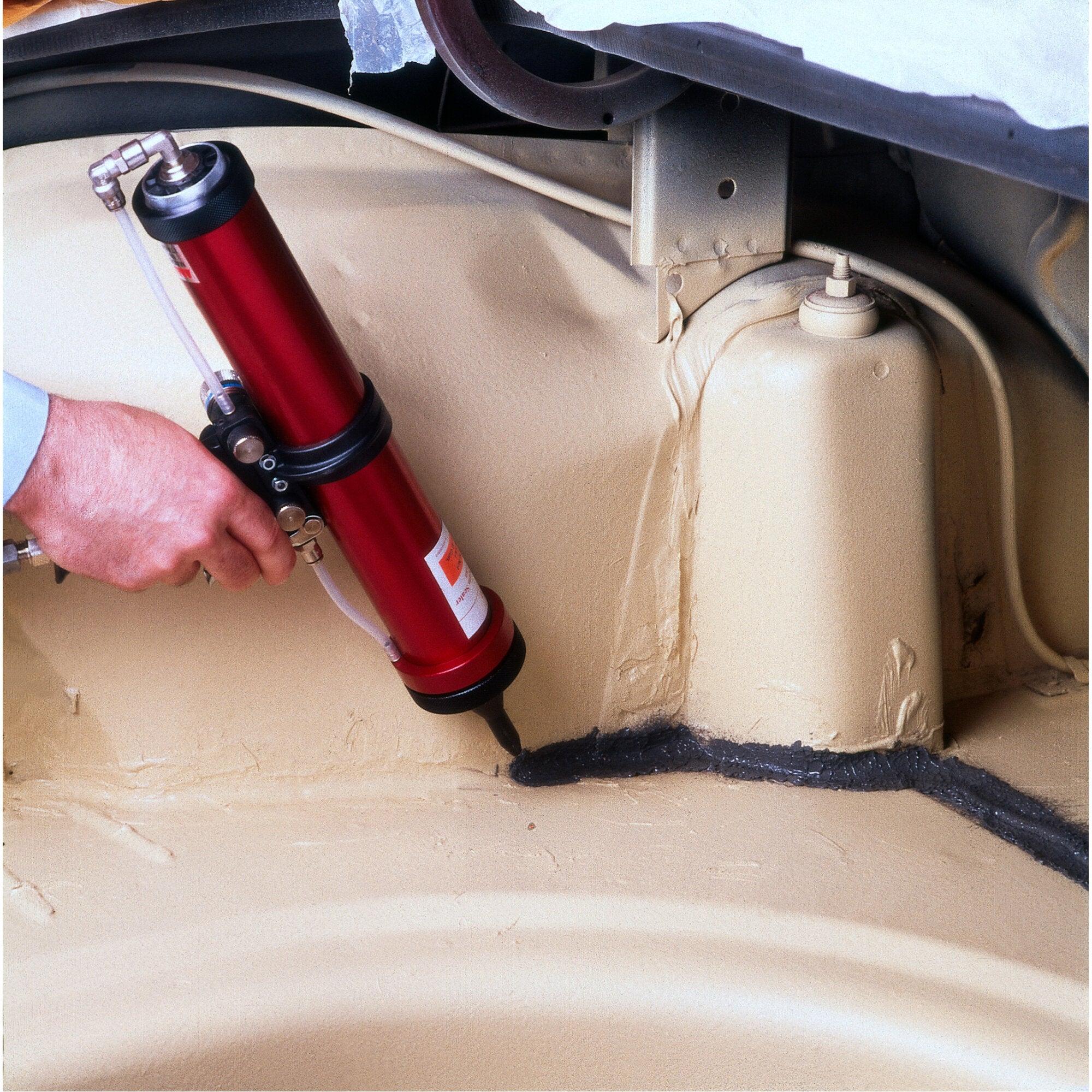 Our seam sealer has been formulated to offer numerous benefits for automotive technicians. With this sealer, you will be able to produce a bead, sprayed seam or a sprayed coating appearance. Multiple appearances can be achieved with one gun and sealer combination, saving the cost and space of carrying multiple products. Excellent adhesion to primed metal and aluminum means there is more consistent bond reliability, resulting in fewer comebacks for seam sealer failure. Fast cure reduces the waiting time for painting. There are no problems with alcohol-containing solvents.