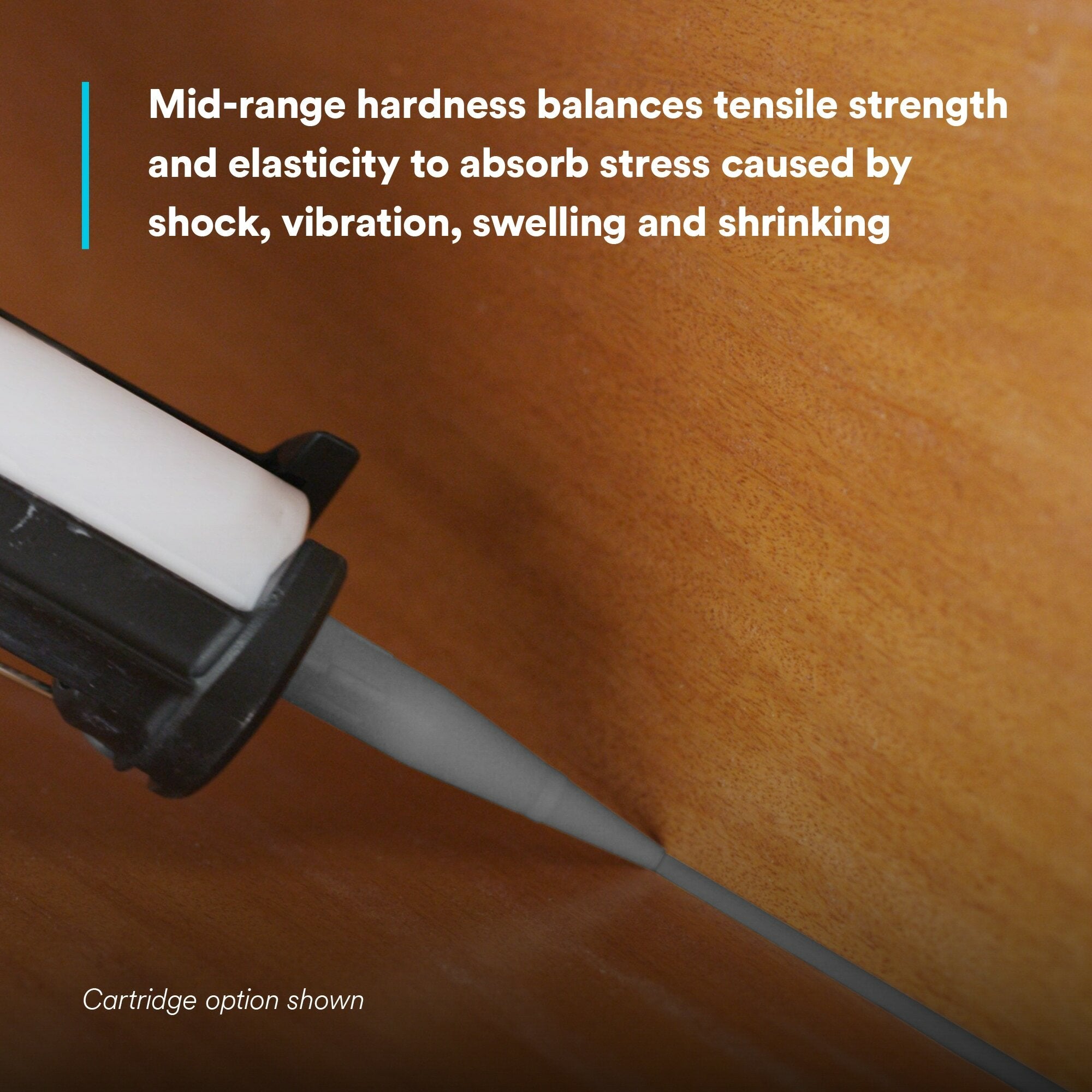 • FLEXIBLE BONDS: Mid-range hardness balances tensile strength and elasticity to absorb stress caused by shock, vibration, swelling and shrinking