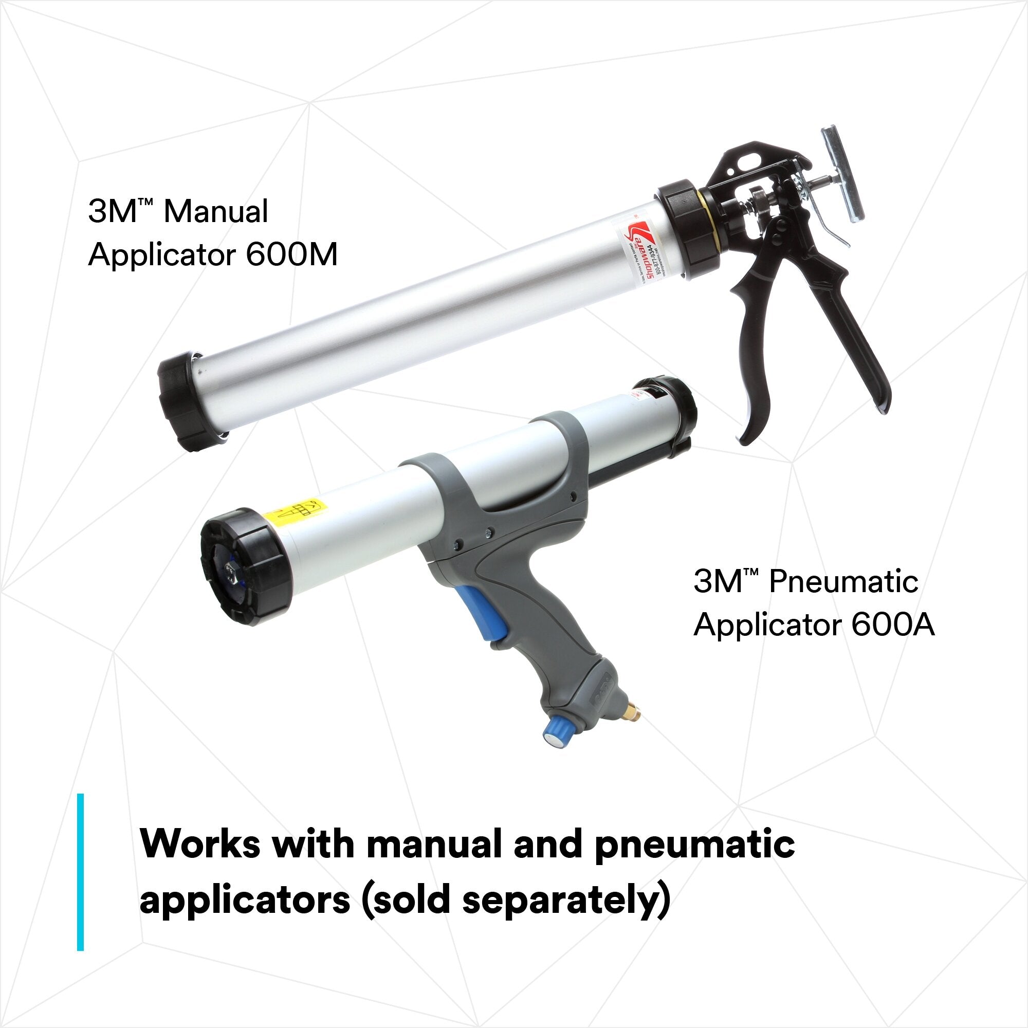 Polyurethane sealants provide strong, flexible durable elastomeric bonds that seal against the elements. These sealants excel in challenging industrial, transportation and construction applications. Polyurethane sealants are available in a wide variety of Shore A hardness, open time and colors to meet many application needs. Choose a 3M Manual or Pneumatic Applicator for dispensing 3M adhesives sealant cartridges and 400ml/600ml sausage packs.
