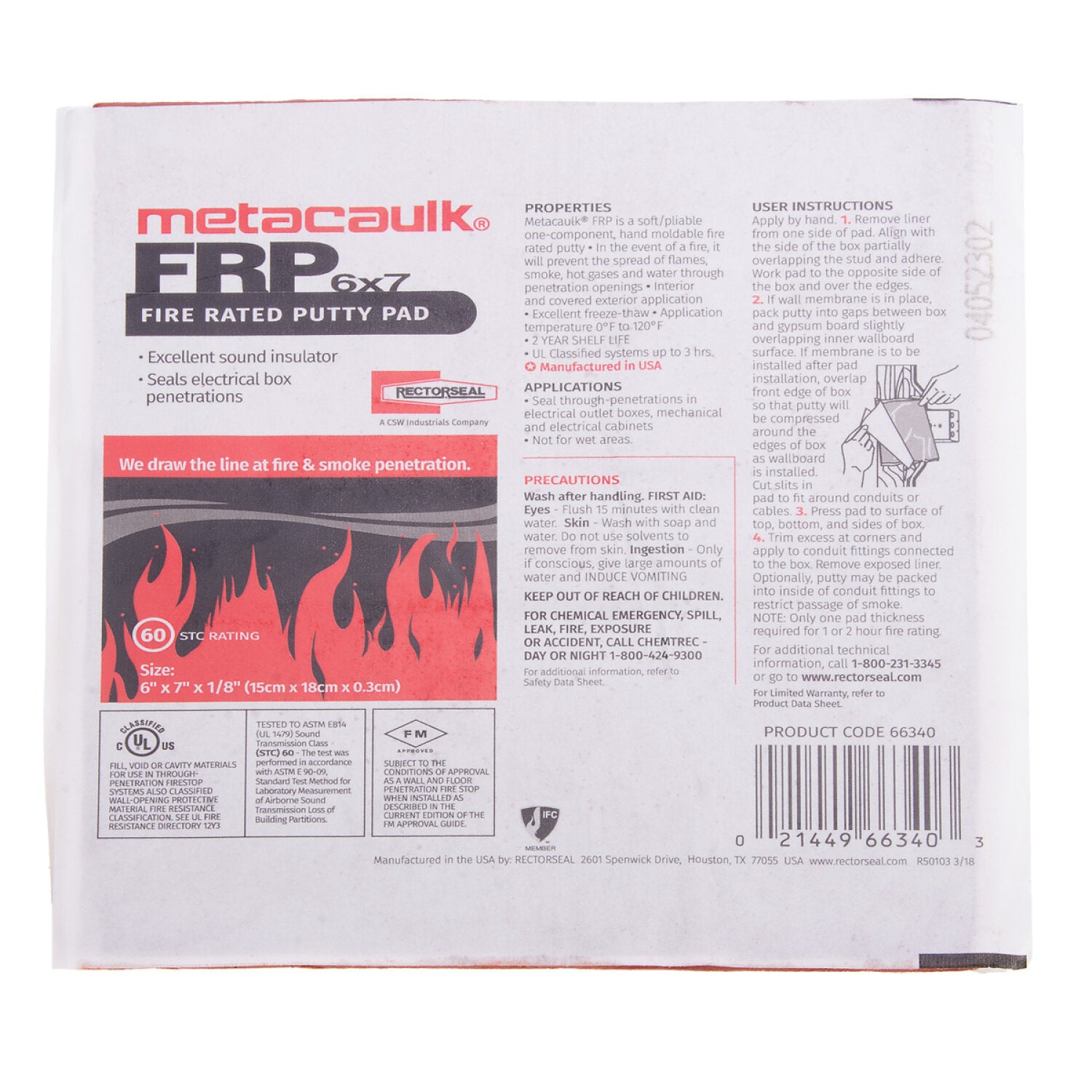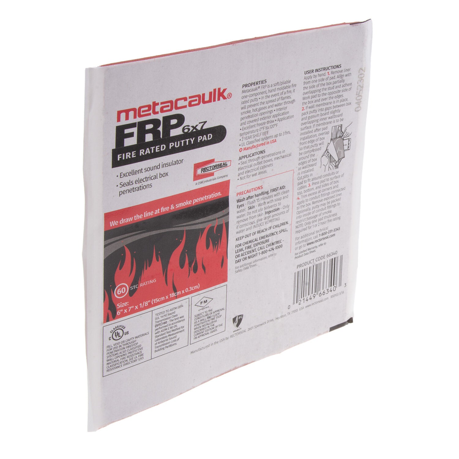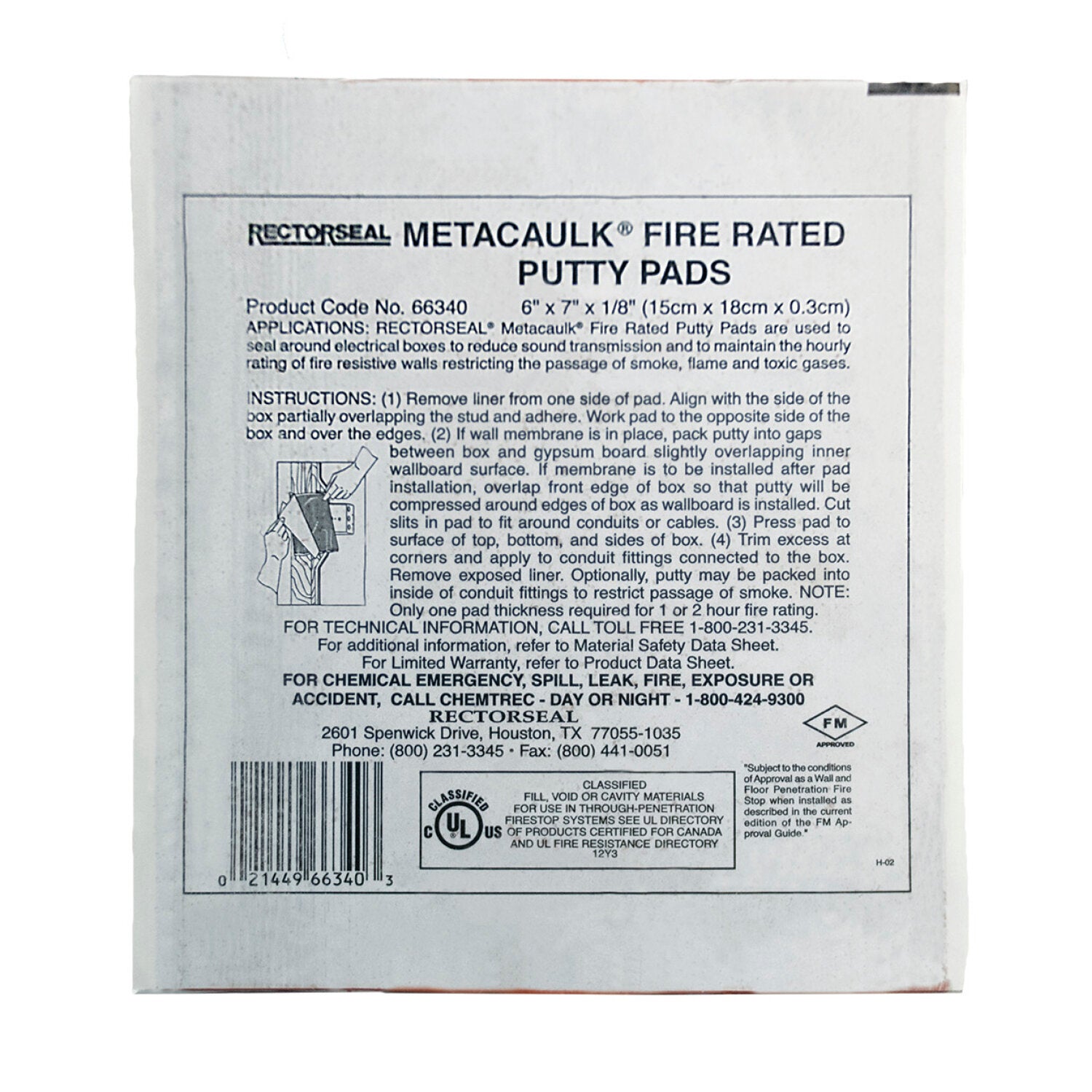 Metacaulk Putty Pads are used to maintain the hourly rating of fire rated walls containing electrical outlet boxes and to reduce sound transmission.