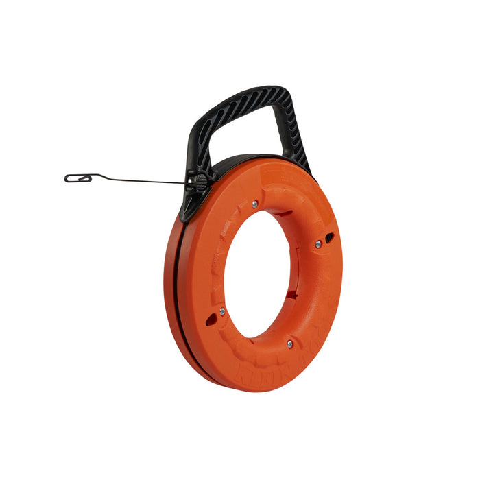 The Klein Tools 65 ft. (19.81 m) steel fish tape features innovative permanent laser-etched markings. The tape is marked every foot in descending order allowing you to more accurately measure conduit runs and know how much tape is left to pay out. Learn more at https://www.kleintools.com/catalog/steel-fish-tapes/18-3-mm-wide-steel-fish-tape-65-19-m