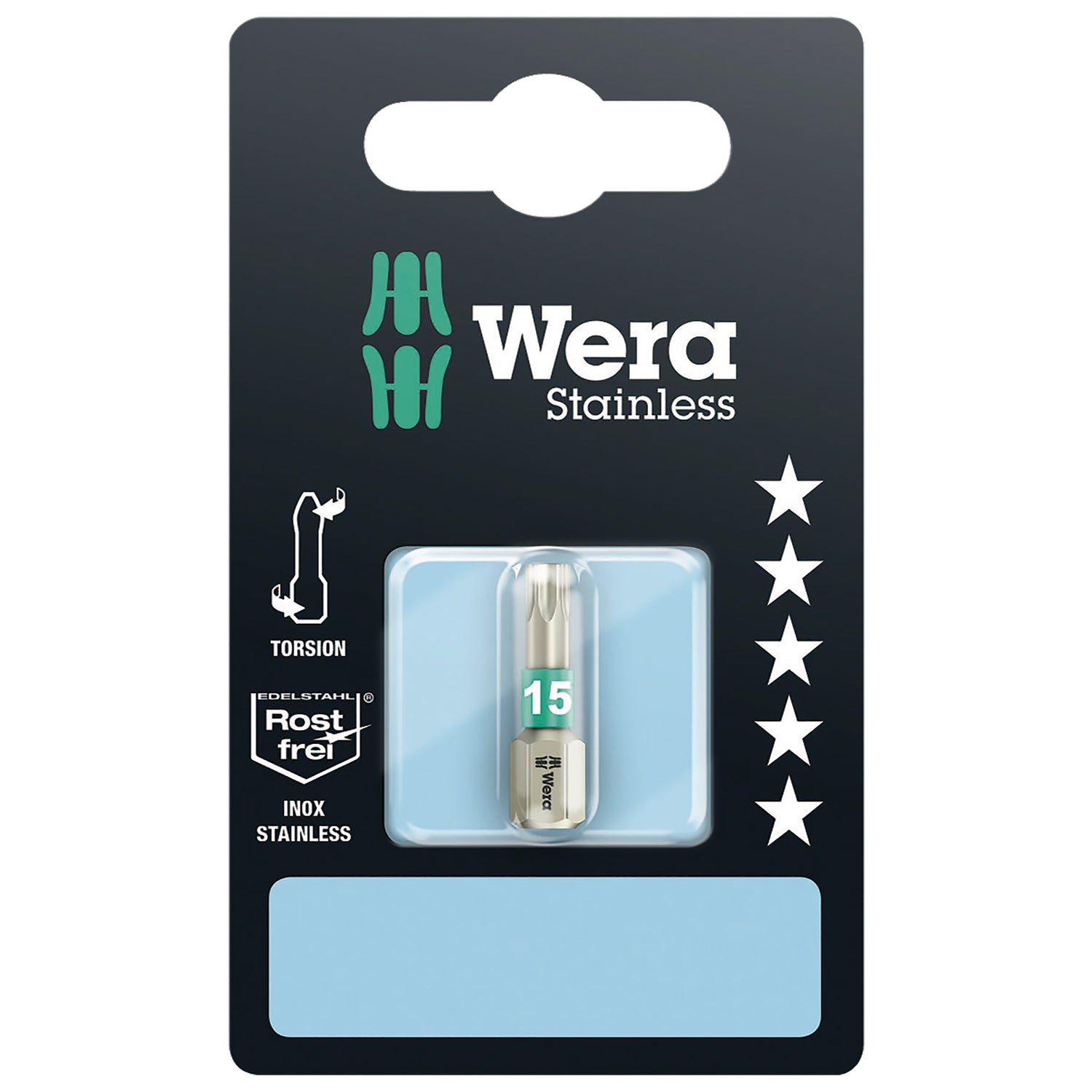 Wera 05073621001 3867/1 TS SB Stainless Steel Insert Bit, TORX® #15, 5 Piece