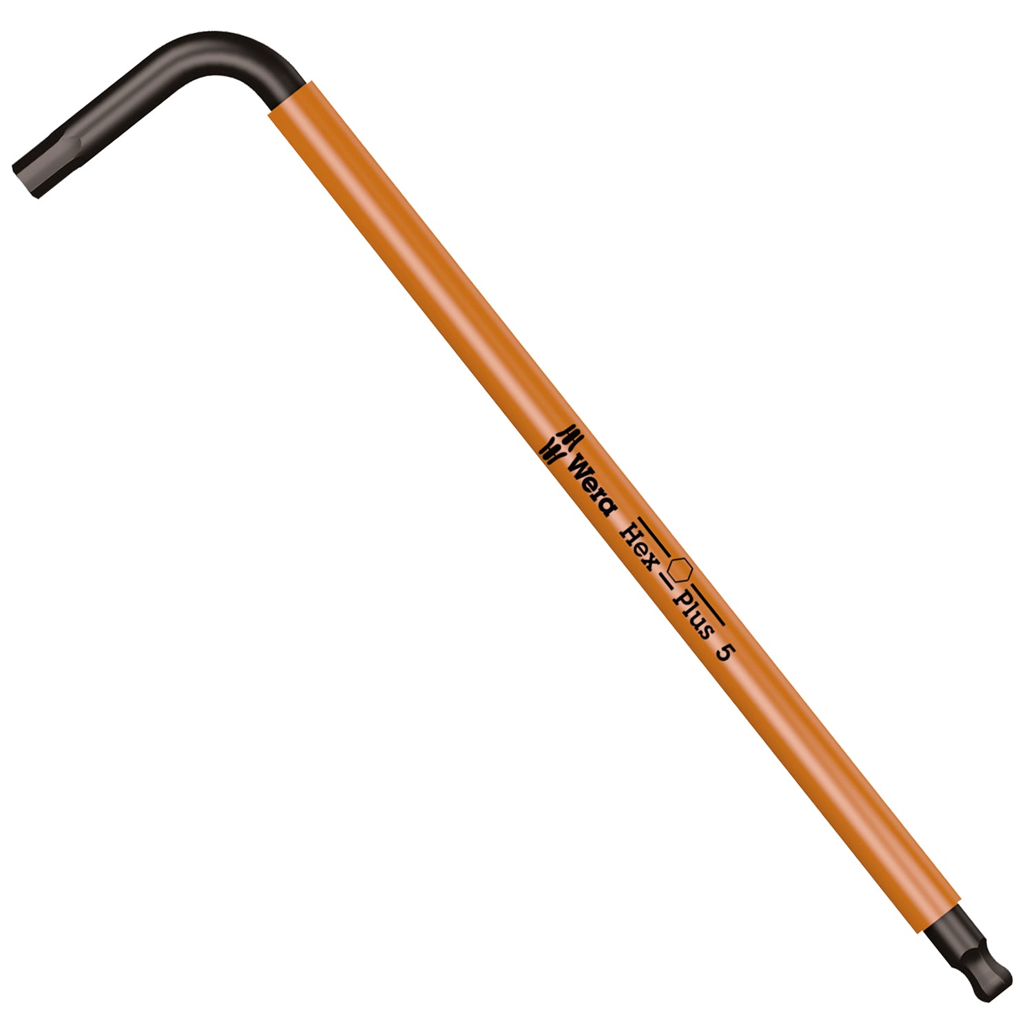 High quality Wera L-keys with colour coded, convenient plastic sleeve. This means that the tool is quickly accessible and the ergonomic and pleasant handle is easy on the hands even at low temperatures. The Hex-Plus profile offers a larger contact surface within the screw head. This reduces the notching effects to a minimum and almost completely eliminates the risk of destroying the screw recess. The ball-end on the long arm allows for reliable working even in difficult installation situations. The holding function holds screws securely on the tool. The BlackLaser surface treatment provides outstanding surface protection, even against corrosion, and a long service life. The tools are quickly to hand thanks to the laser-engraved and thereby wear-resistant size markings on the L-keys.
