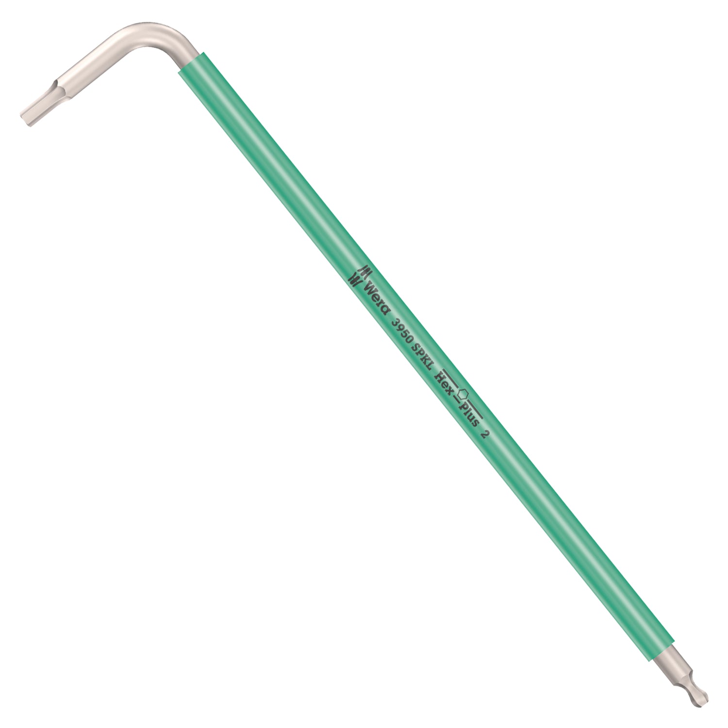 Premium stainless steel Wera L-key for hexagonal socket screws. Stainless steel prevents transmission of extraneous rust. The Hex-Plus profile offers larger contact surfaces in the screw head. The notch effect is reduced to a minimum and the destruction of the screw is nearly eliminated. With hexagonal ball tip at the long arm: The ball-shaped tip profiles enable the tool shaft to be moved and pivoted relative to the screw axis which allows screwdriving "around the corner". "Take it easy" tool finder with colour coding by size.