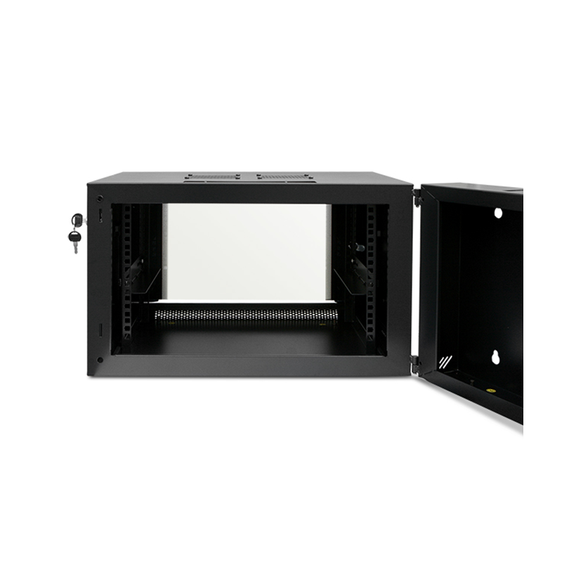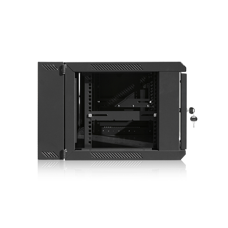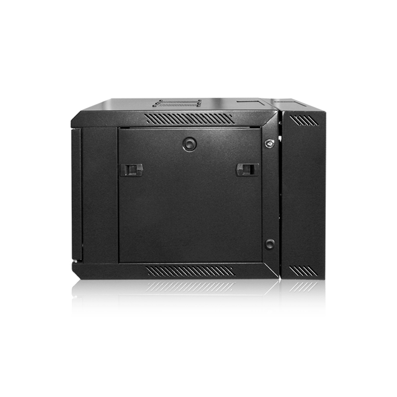 Elegant and secured WMZ-655 swing-out wall-mounted cabinet by CLAYTEK. The easy side panel access and swing-out design are convenient to perform routine maintenance, but also can be locked to prevent unauthorized access. Three ways, top, bottom, and rear cabling tunnels enable data and cable routing. WMZ series incorporates optimal cooling design. The partially vented frames and two optional AC fans that can be put on the top panel give the wall-mount cabinet excellent air ventilation. Heat-treated glass door provides extra strength and able to silkscreen logos, marks, and labels to boost product image.