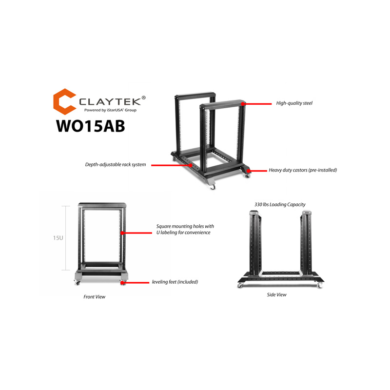 iStarUSA WO15AB 15U 4 Post Open Frame Rack