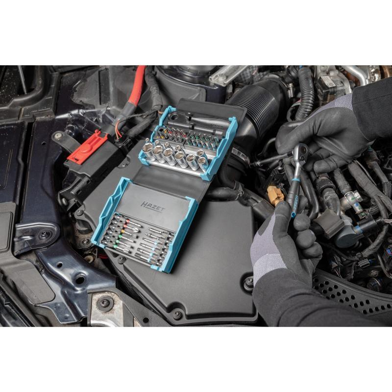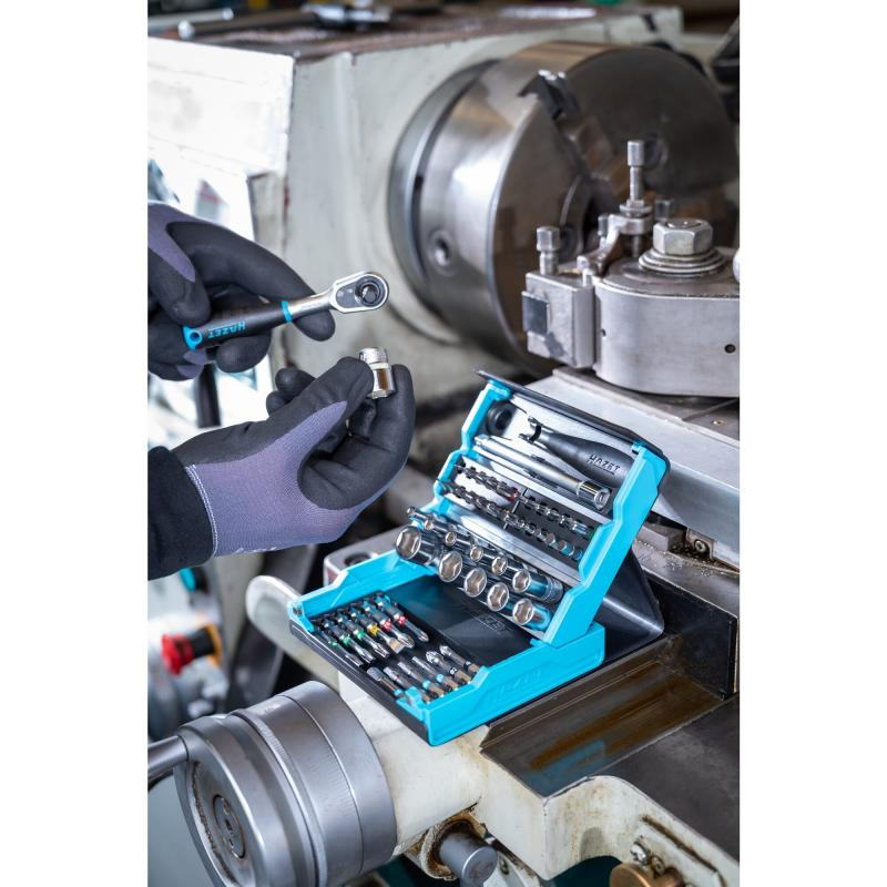 Optimal overview and easy removal of the tool – can be folded flat or – similar to a tablet case – can be stood up