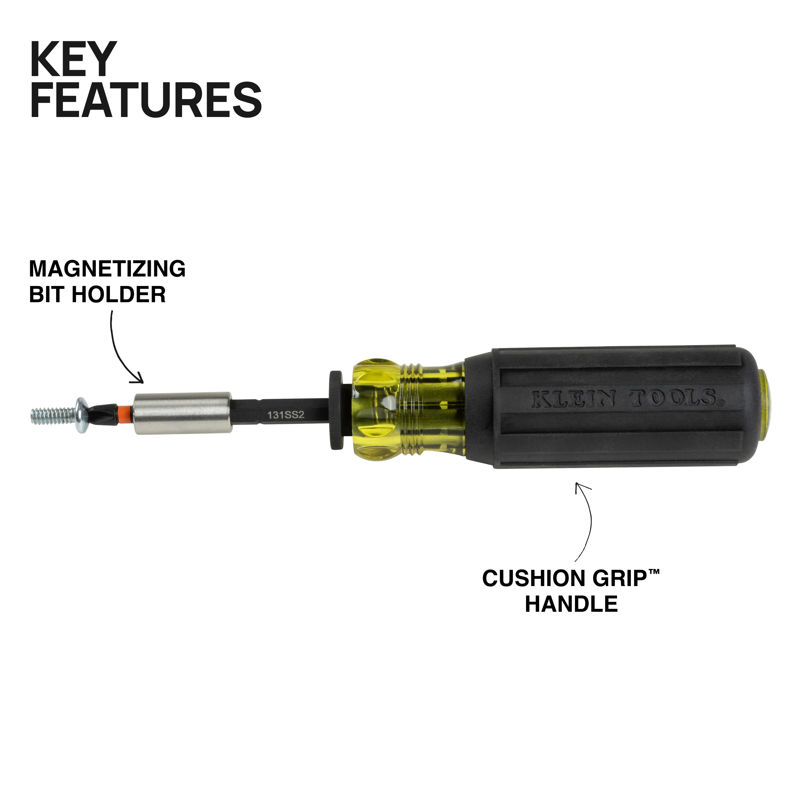 • Cushion-grip™ screwdriver has adjustable-length blade with quick-adjust push button