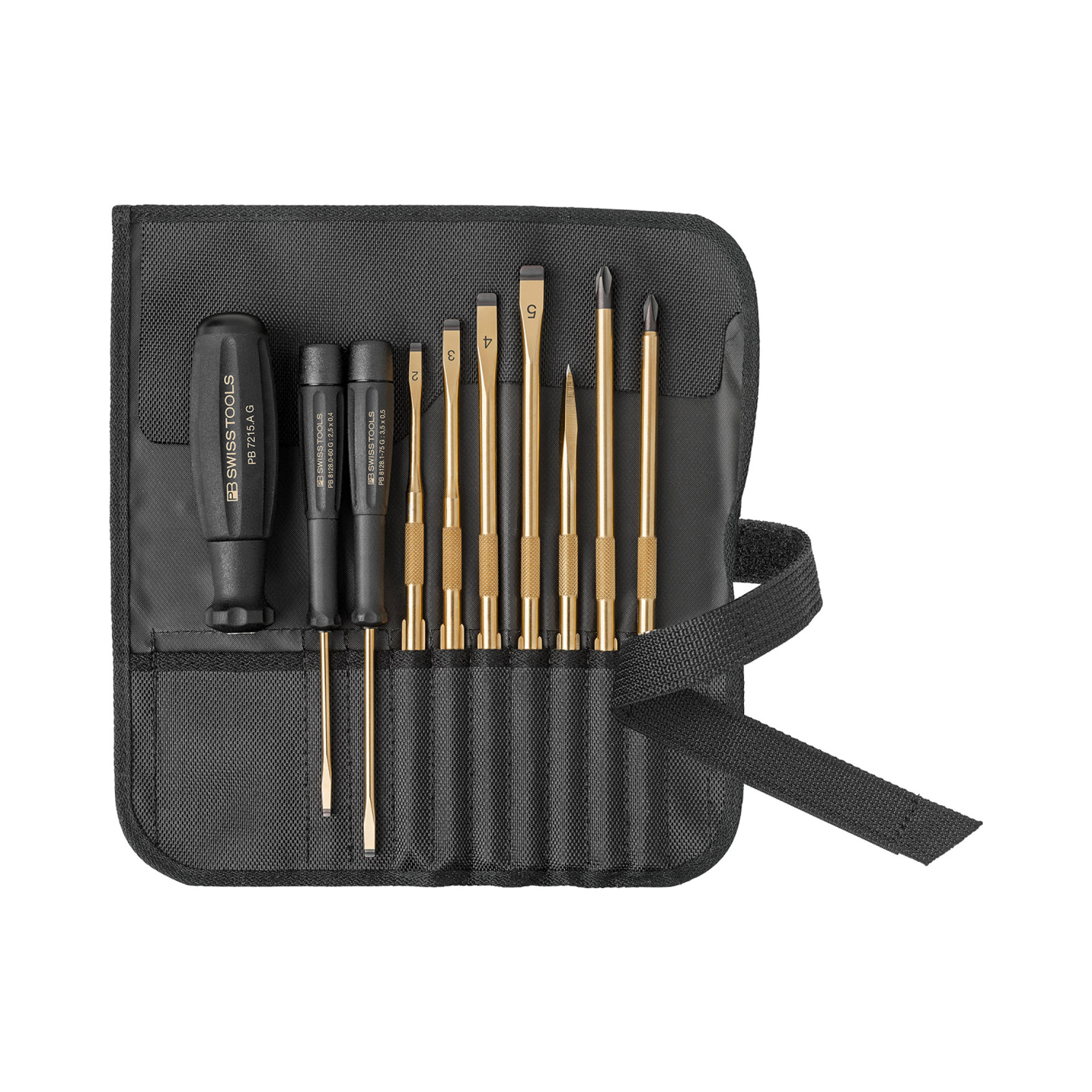 The PB Swiss PB 8218.G 145 Y Gold Interchangeable Screwdriver Set Anniversary Limited Edition is the perfect tool for assembly and servicing work, either in workshops, at home, or on the road. The black handle, gold-plated driver shafts, and ergonomic design with a soft grip guarantee superior comfort and torque transmission. Manufactured with high-grade materials that are resistant to solvents, oils, acids and salts, the precise true-to-size tips provide an optimal fit in screw heads.