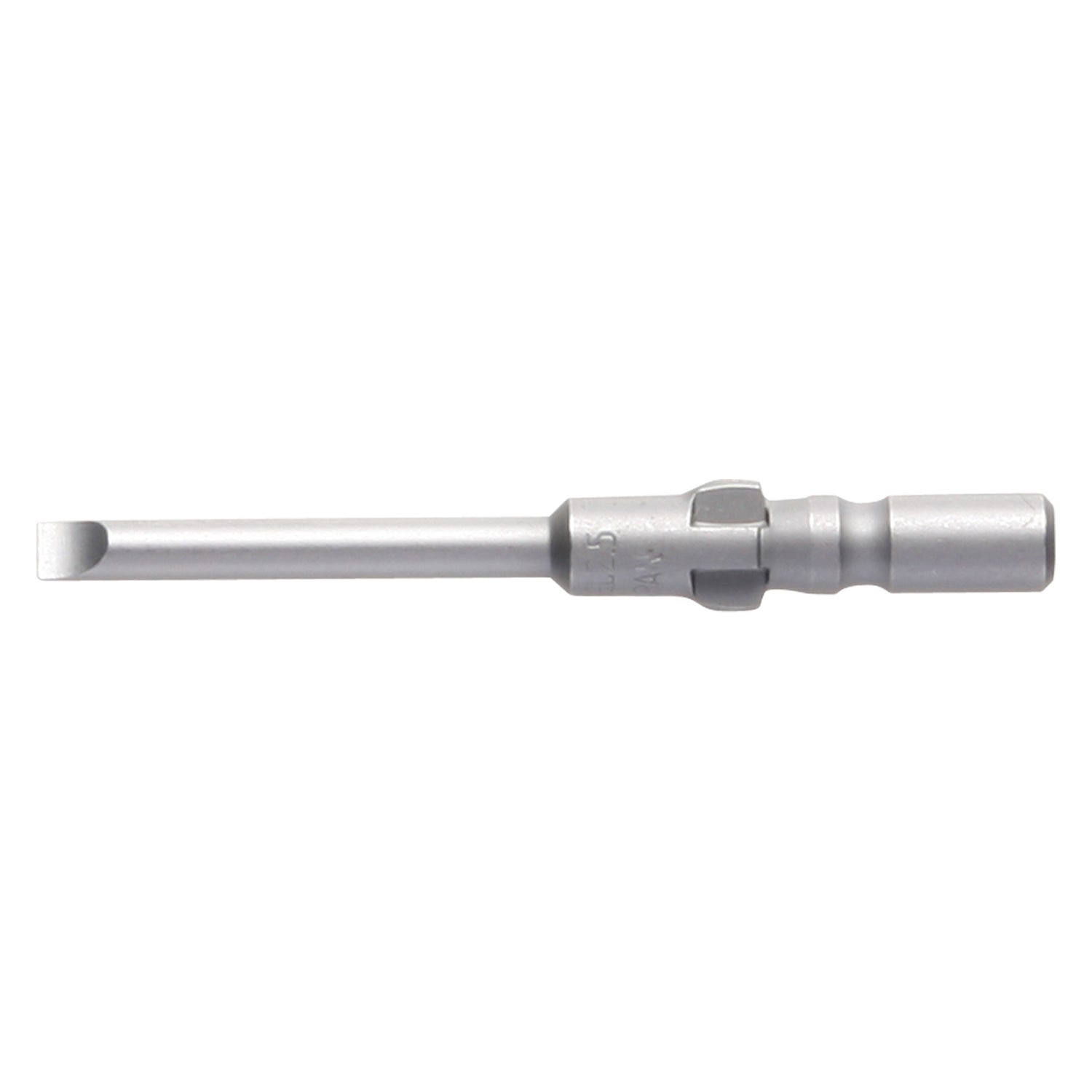 The Precision Bit Wing-shank φ4mm, Slotted 2.5x(t)0.3x40, a must-have tool designed for maximum efficiency and precision in your fastening tasks. This bit features a specially engineered wing-shank design, which enhances grip and stability, ensuring a secure fit with slotted screws while minimizing slippage. With a slotted profile measuring 2.5x(t)0.3, this bit is specifically crafted to engage perfectly with slotted fasteners, allowing for smooth insertion and removal. The 40mm length provides an optimal reach, making it ideal for tight spaces and challenging angles, whether you're assembling furniture, performing repairs, or handling various DIY projects.