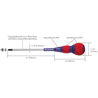 Vessel Tools 220S6150 Ball-Grip Screwdriver No.220, Slotted 6