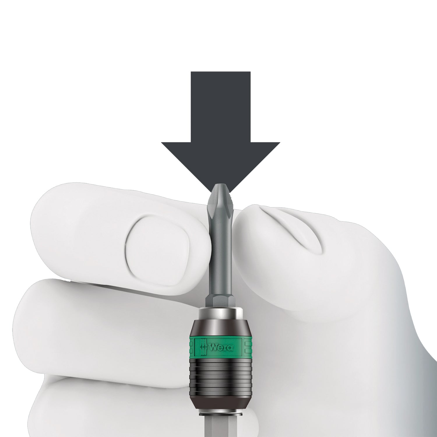 - For bits with 1/4" external hexagon drive as per DIN ISO 1173-C 6.3 and E 6.3
