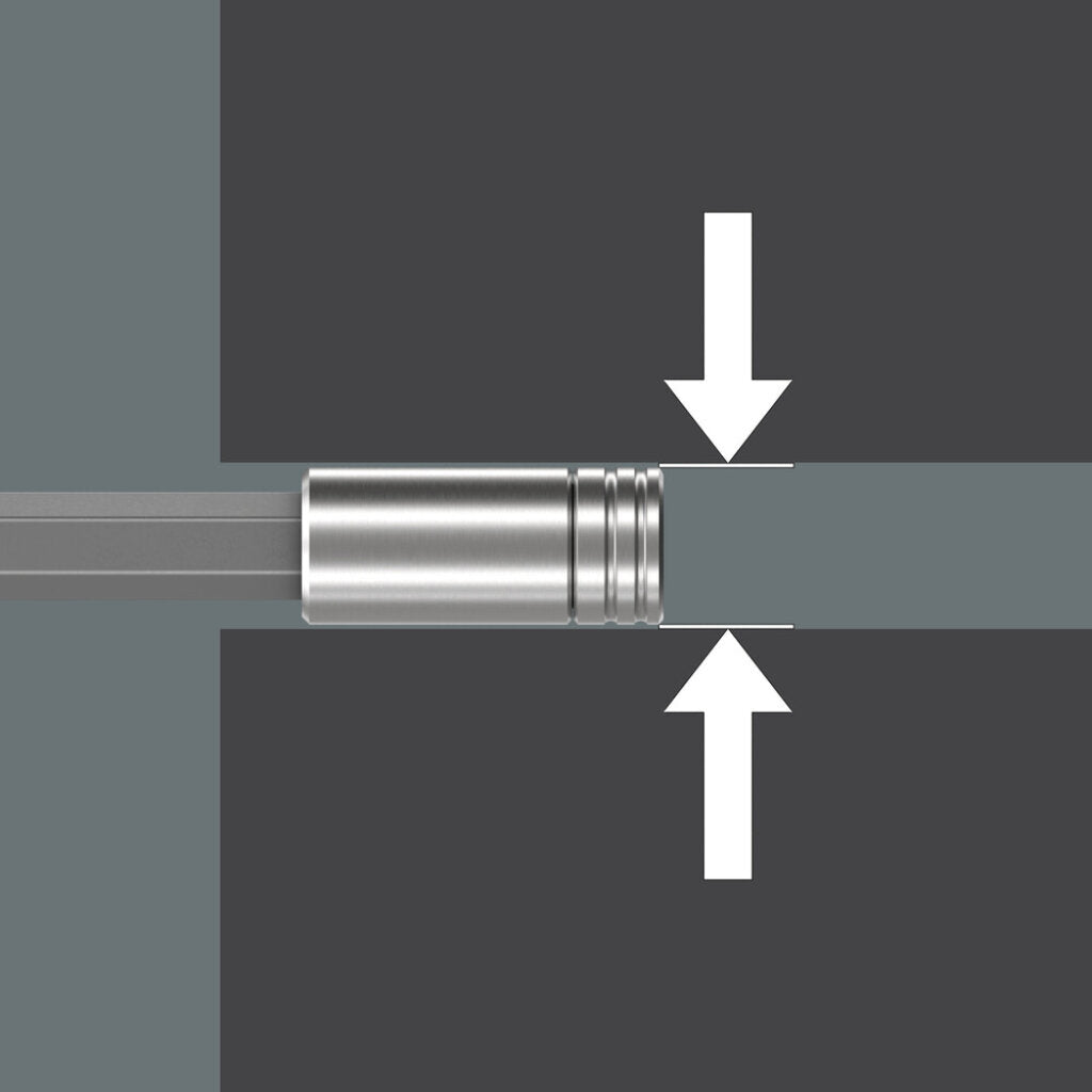 Bit set for universal use. Bitholding screwdriver with 300 mm long blade and very slim, lockable bit mounting to reach areas which are difficult to access. Thanks to the particularly slim design, even screws in very tight installation spaces can be operated. Multi-component Kraftform handle for high working speeds and particularly ergonomic screwdriving. Magazine integrated in the handle for bit storage. 6 tough, 25 mm length bits (Phillips-head Phillips and Pozidriv and TORX®). This set replaces a 6-piece screwdriver set and reduces the necessary equipment to a minimum. With hexagon anti-roll protection against rolling away.