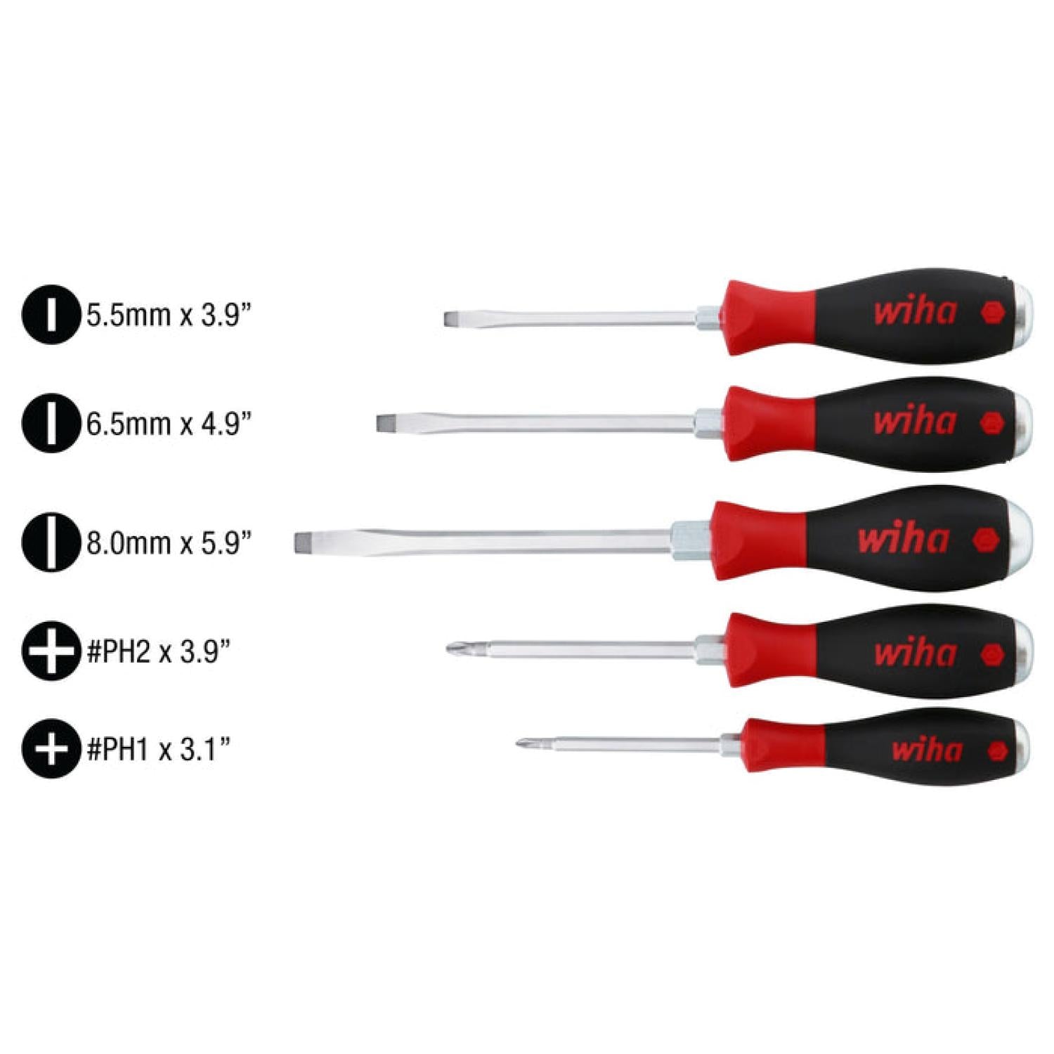 Wiha Tools 53090 SoftFinish Extra Heavy Duty Slotted/Phillips Screwdriver Set 5 Piece