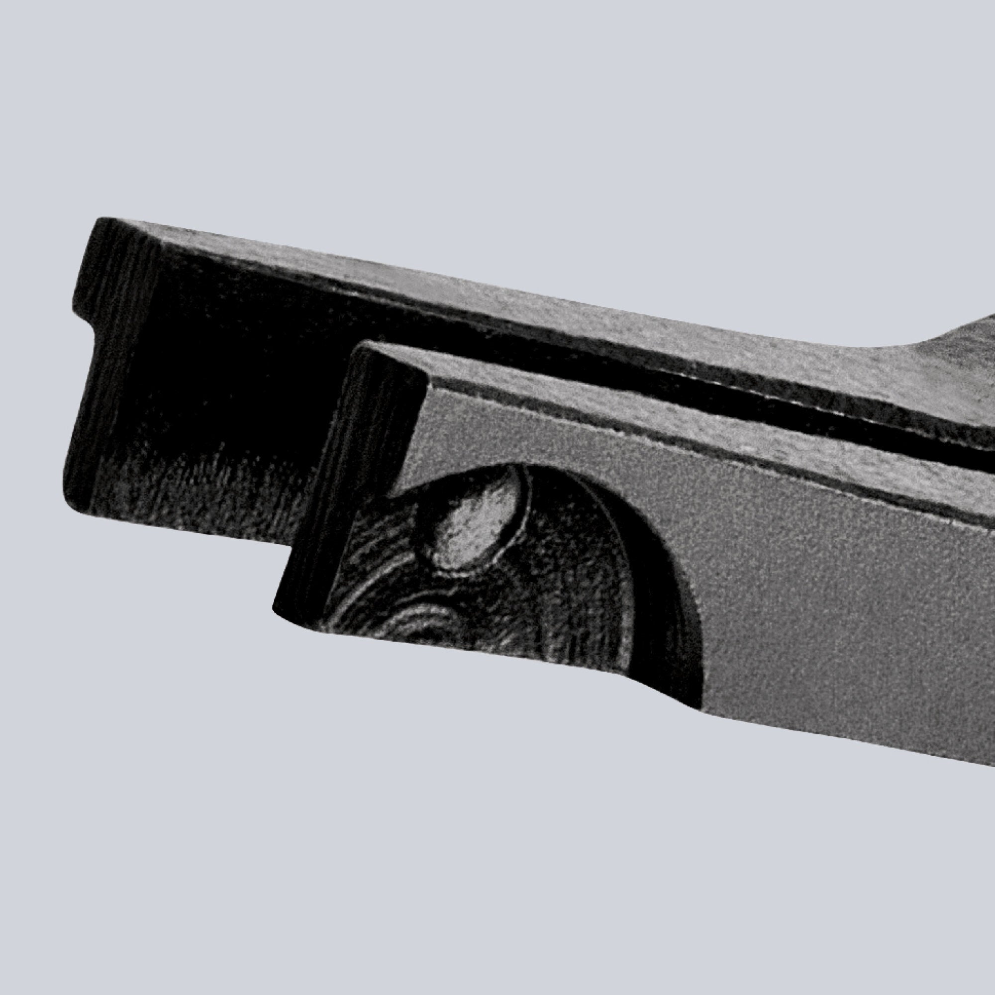 - Angled jaws with centering hole; for snap rings larger than 15/32" (12.0 mm) dia., e. g. for securing drive shaft in the gearbox of a motor vehicle